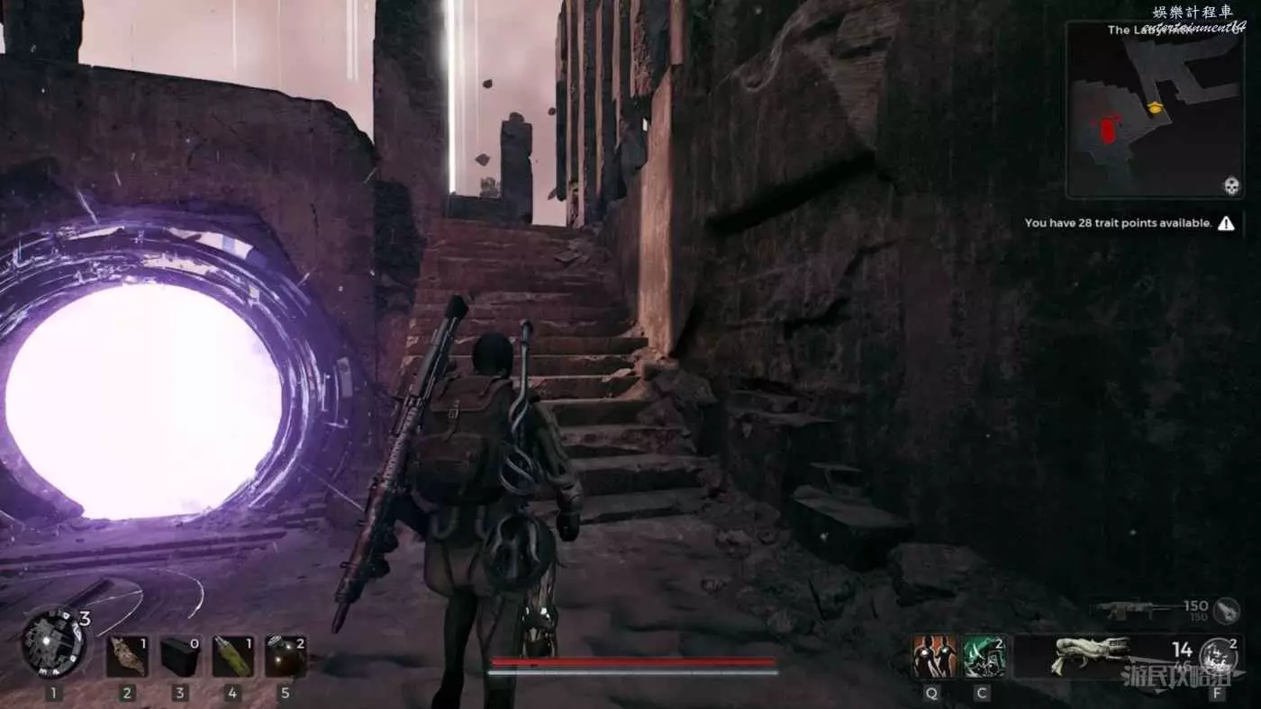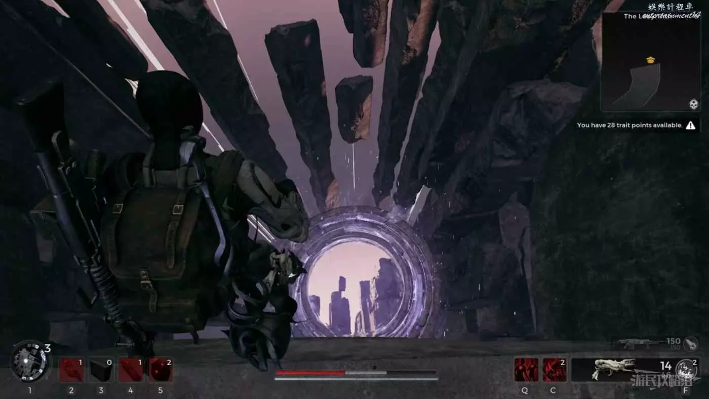 到達傳送門所在位置後,面對傳送門,從它的一側往下看,下方半空中可以看到一個傳送門,跳過下方傳送門。