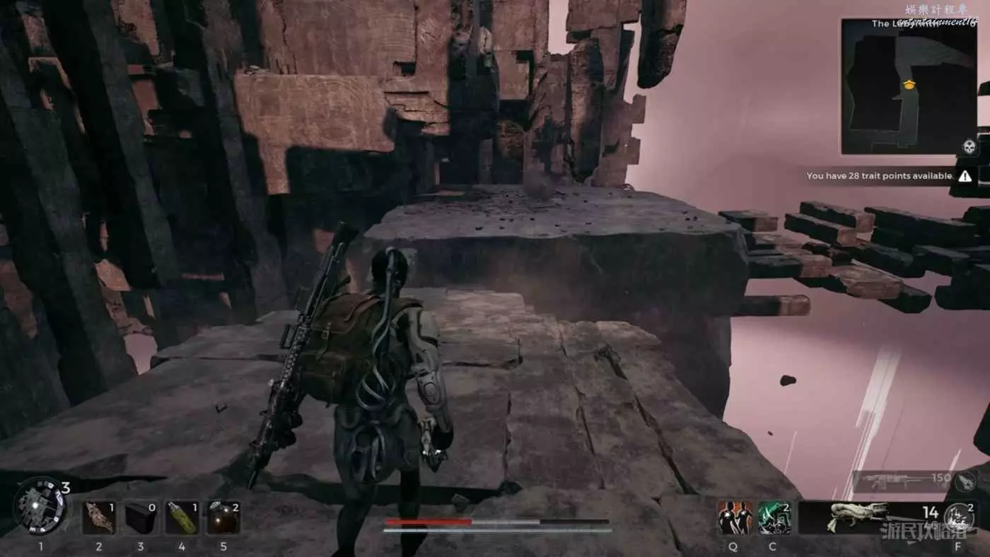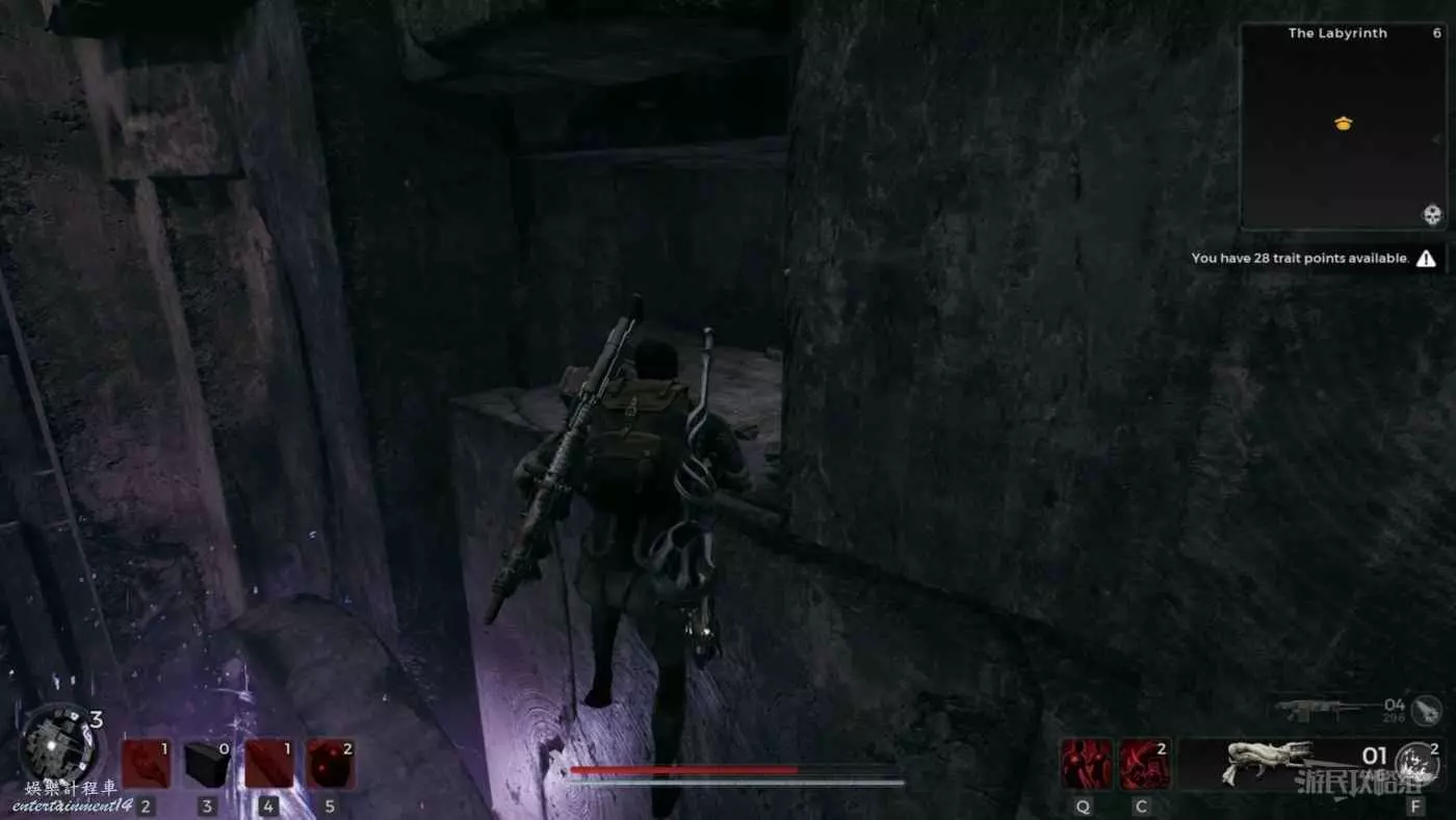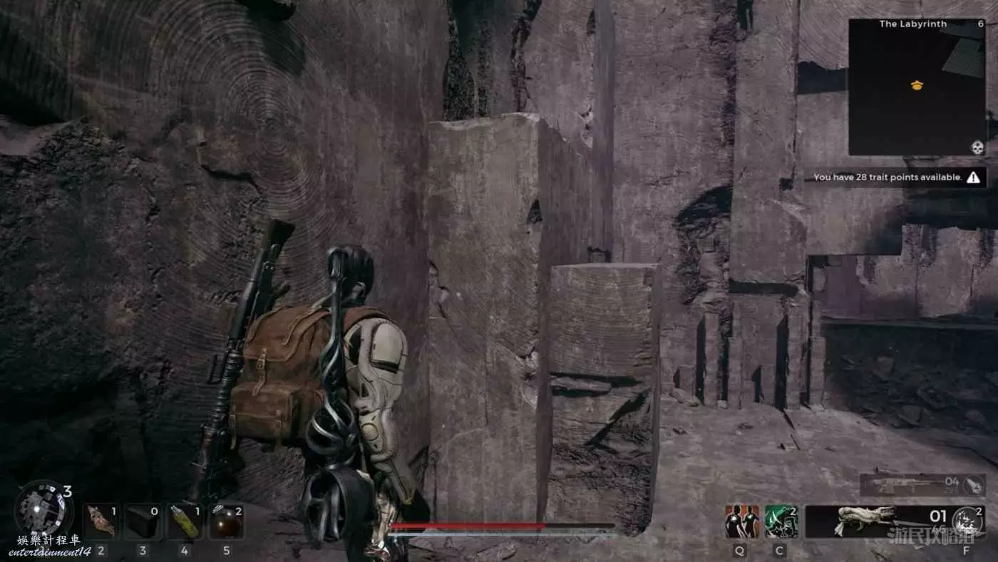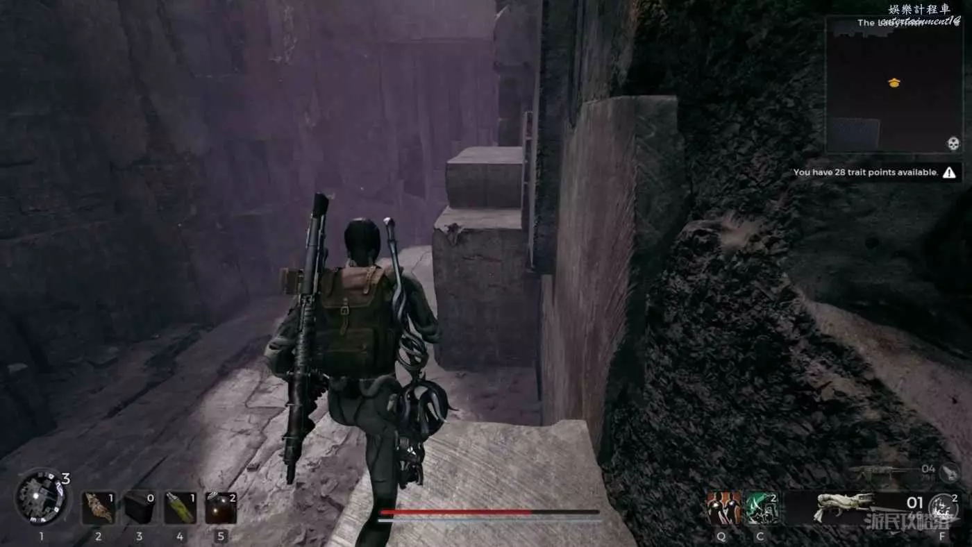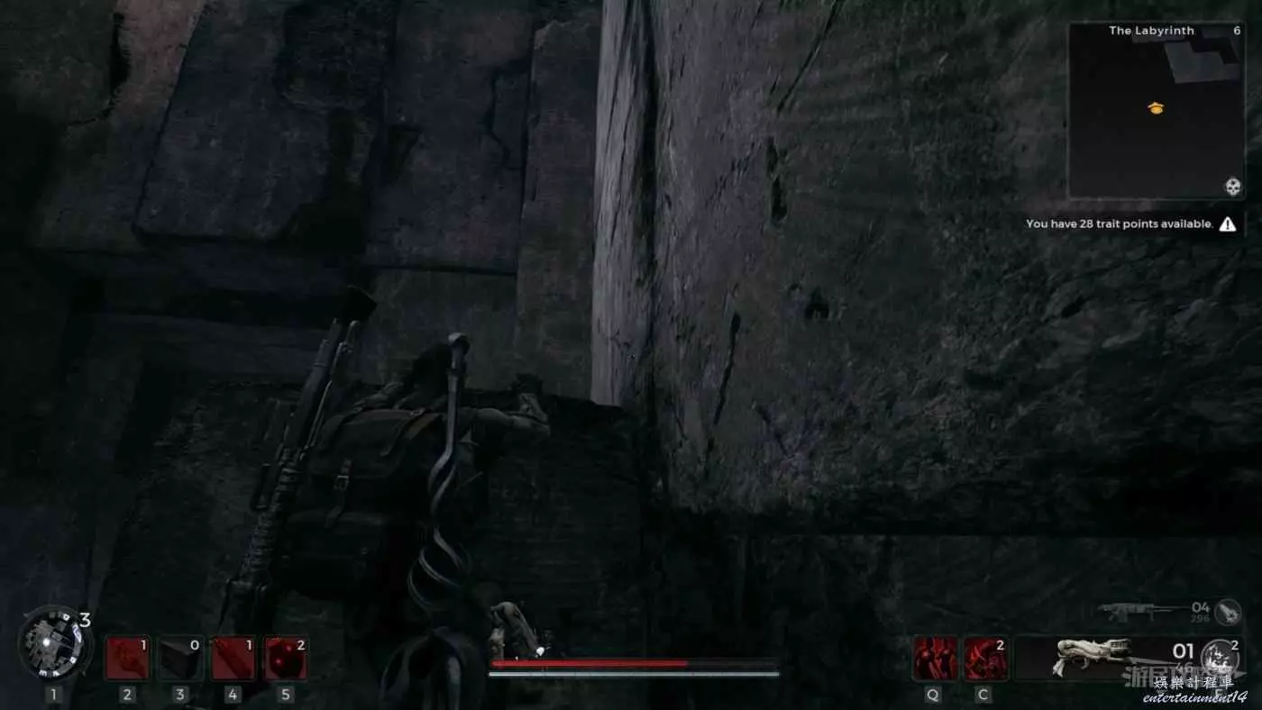 再次左轉,通過牆壁上凸出的石塊往上爬,參考下方圖片利用石階反覆跳躍並往上爬。