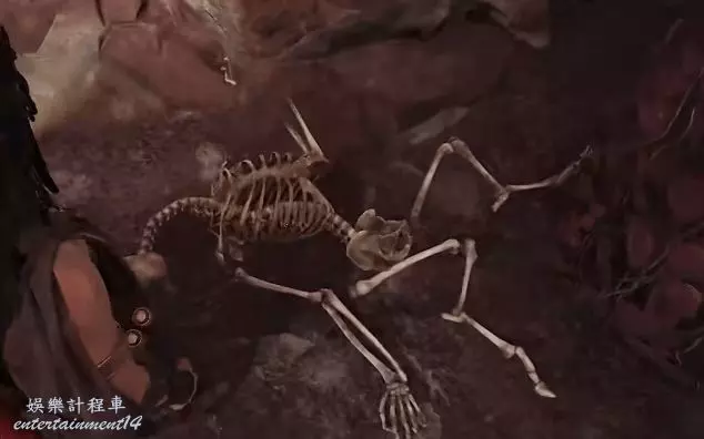 8、我們向地圖的下方出發經過回轉樓梯後跳過小瀑布來到溫泉,在一座枯骨上會發現污穢鑰匙。