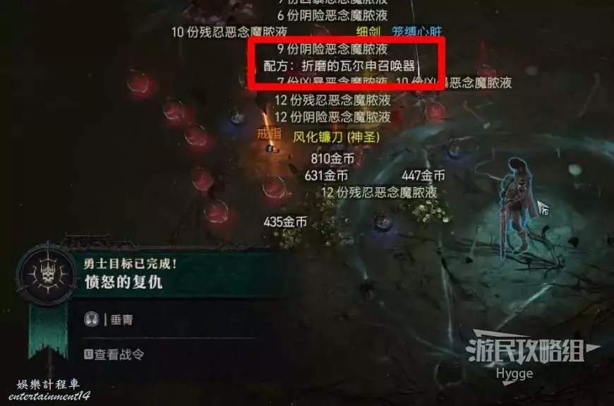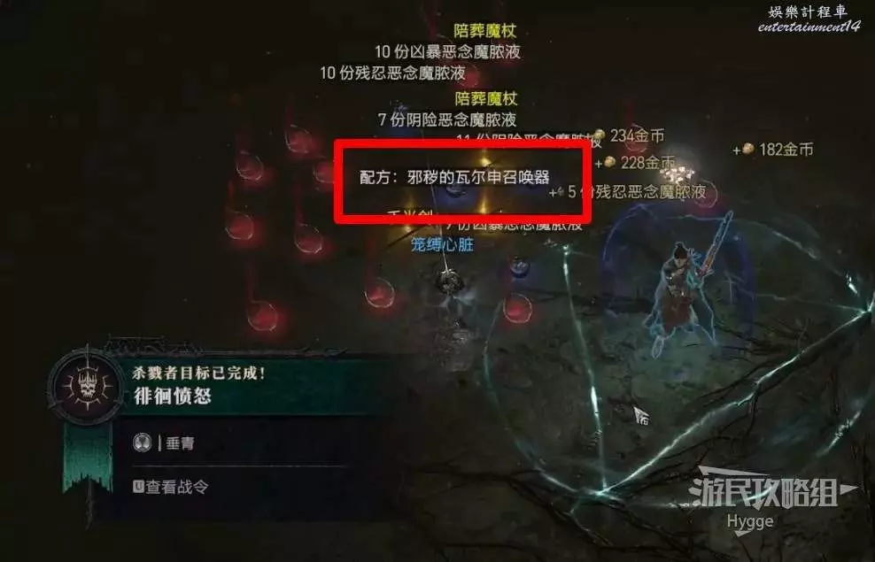 擊敗瓦爾申的迴響後會掉落一個賽季寶石和配方:邪穢的瓦爾申召喚器。