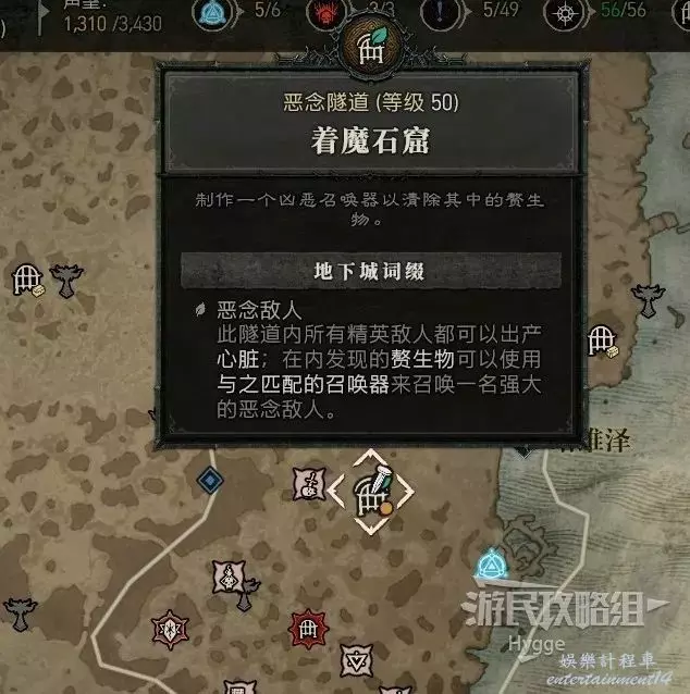 獲得普通的瓦爾申召喚器後來到位於死水堡西邊的副本【著魔石窟】。可以發現該副本帶有葉子標記,並有額外的地下城詞綴。