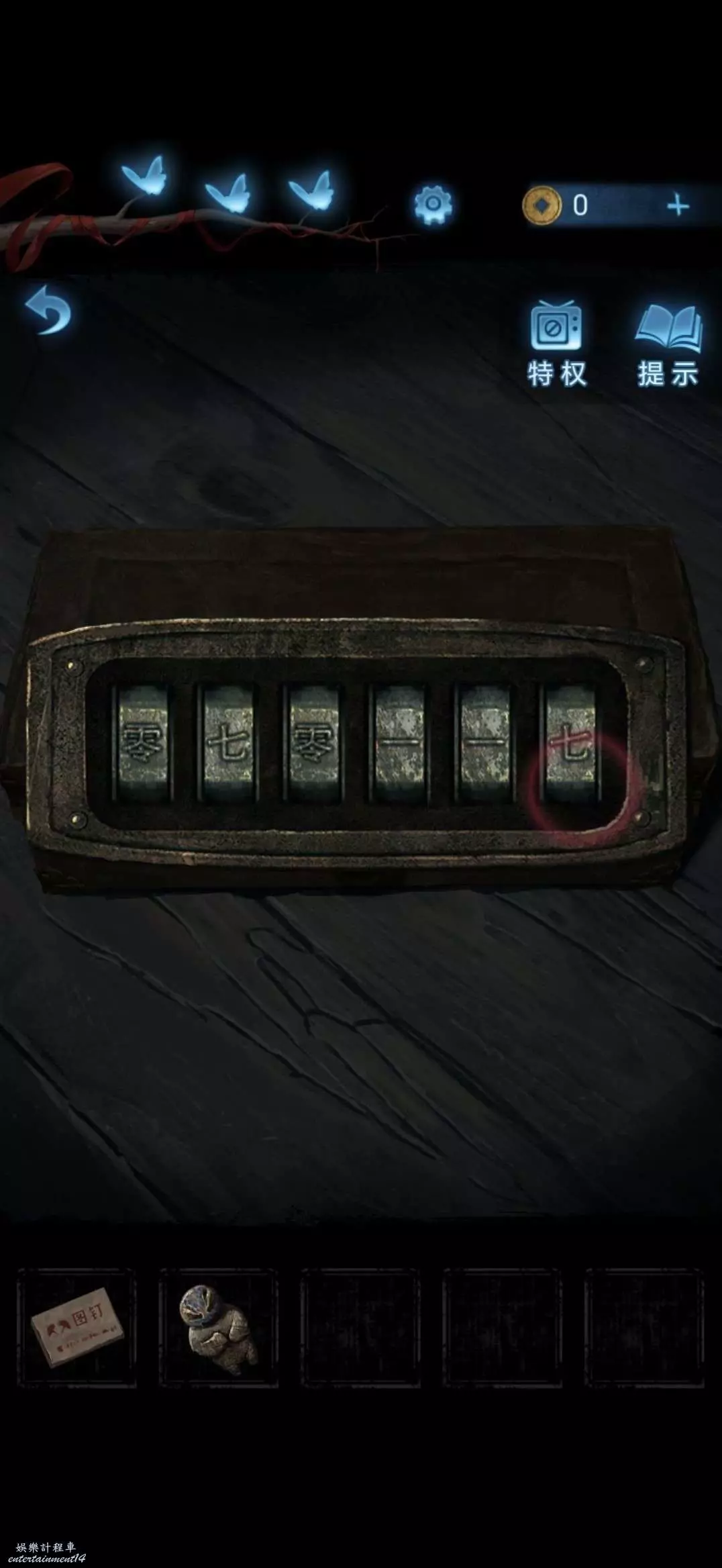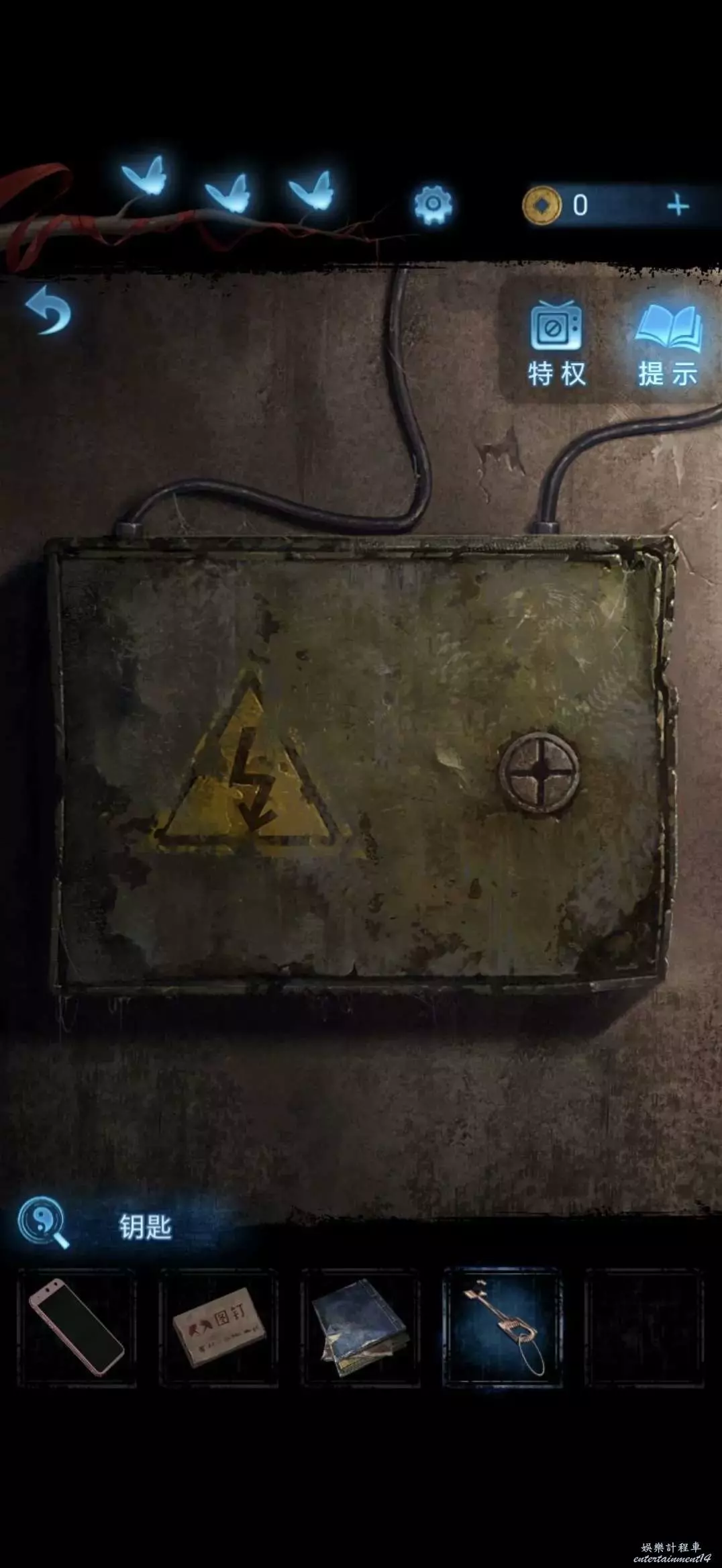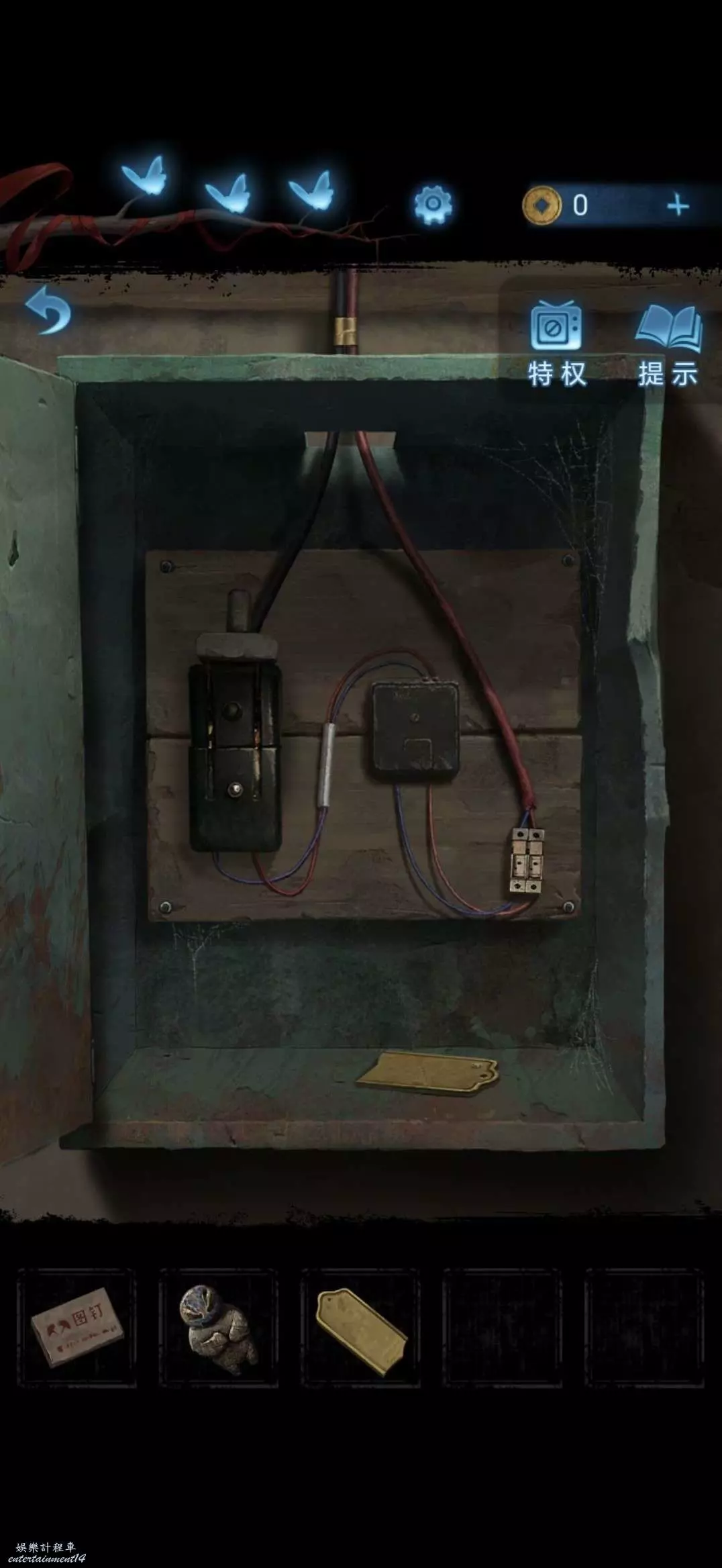 根據燈影從上到下的順序可以得知電箱的密碼312324,打開電箱,獲得小牌子