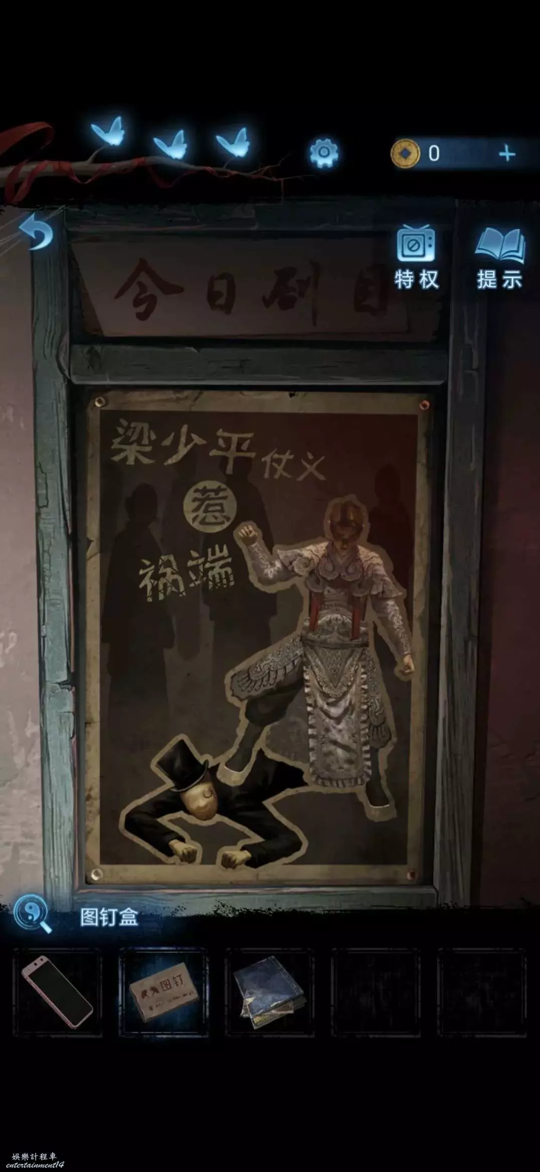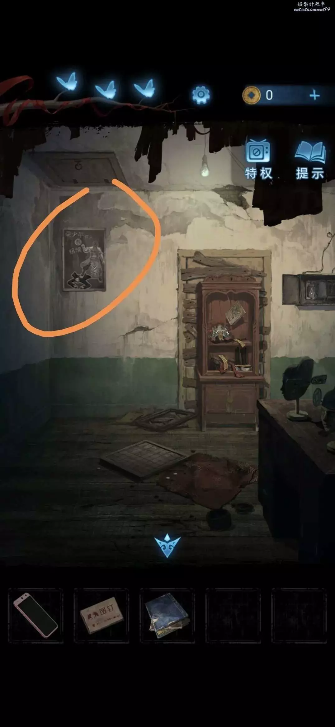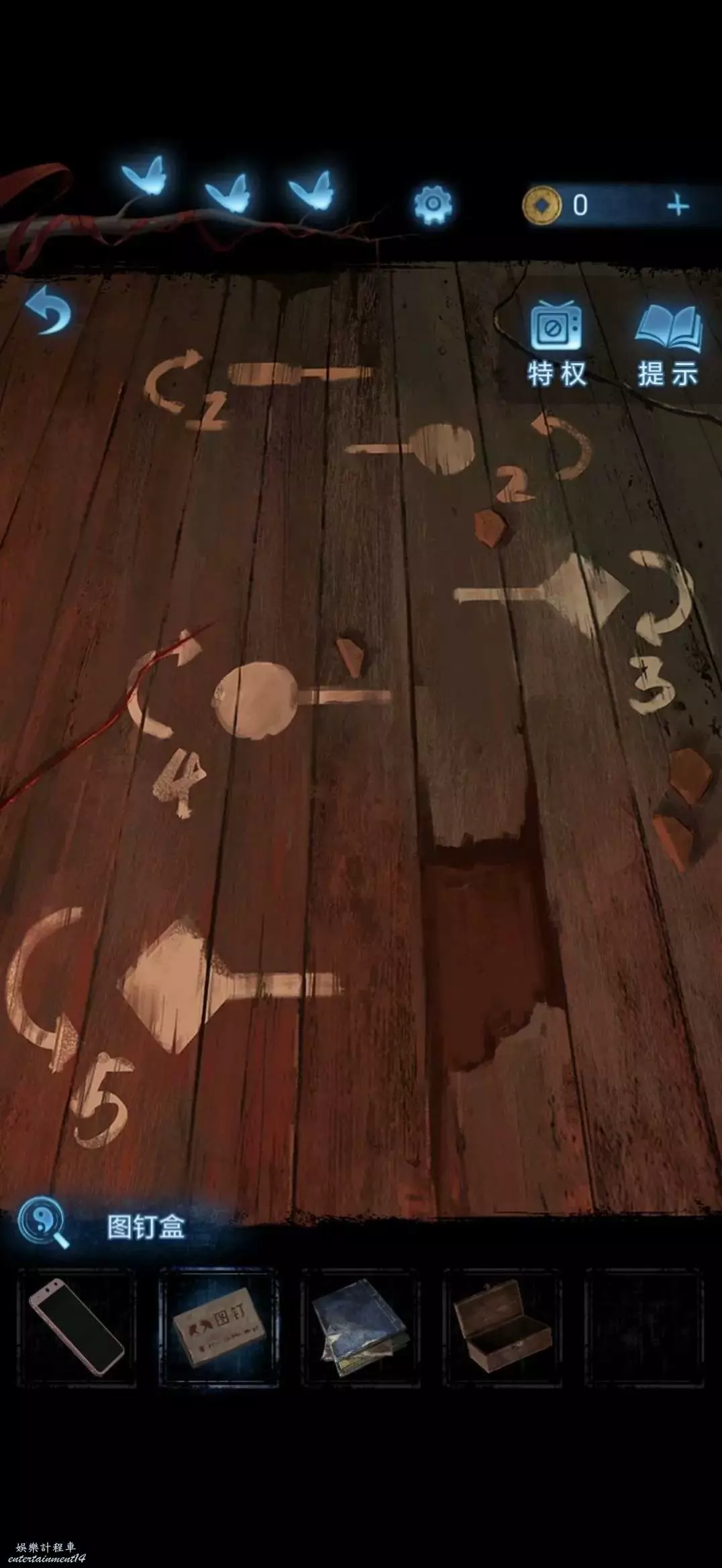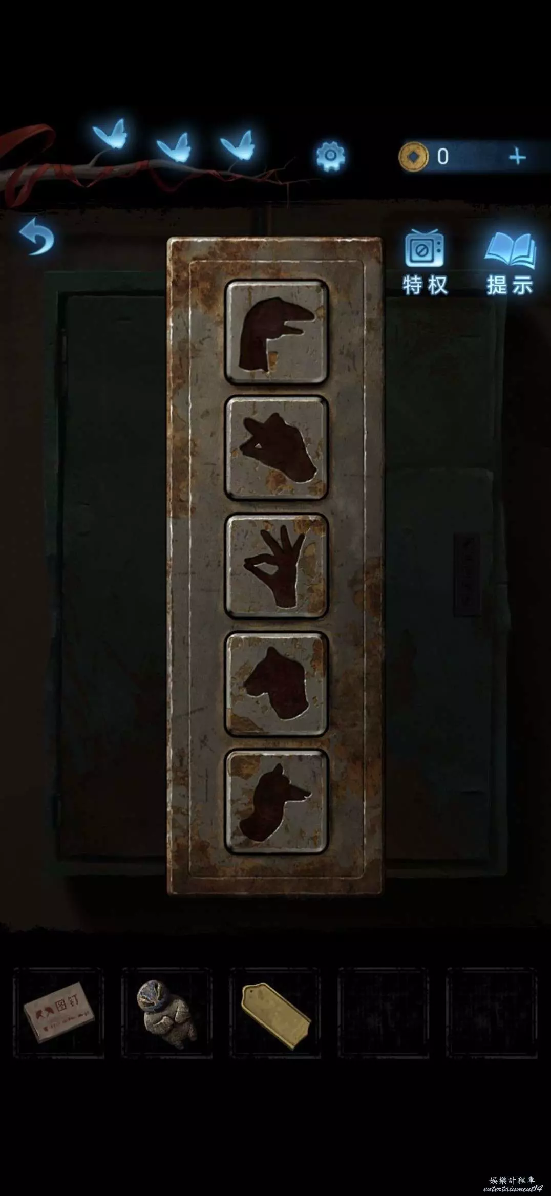 根據燈影從上到下的順序可以得知電箱的密碼312324,打開電箱,獲得小牌子
