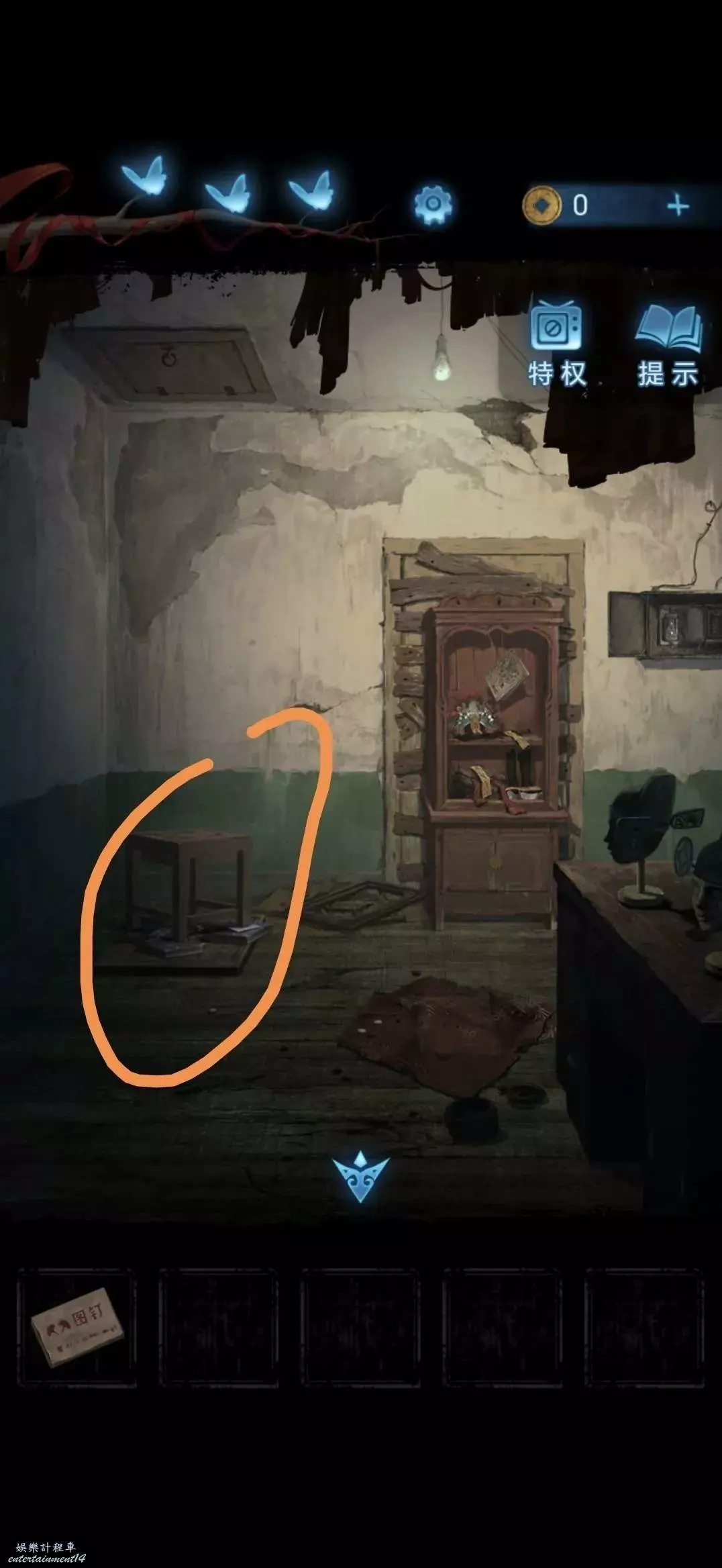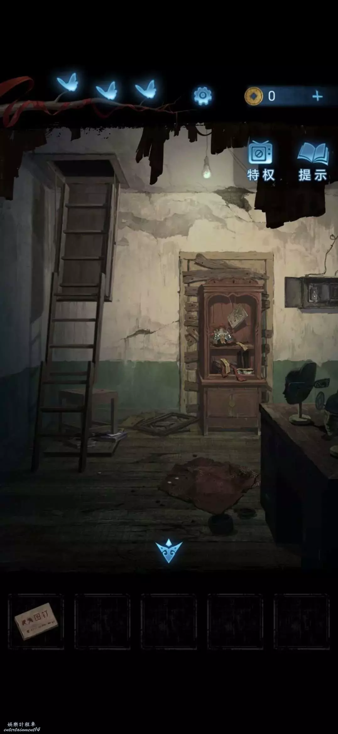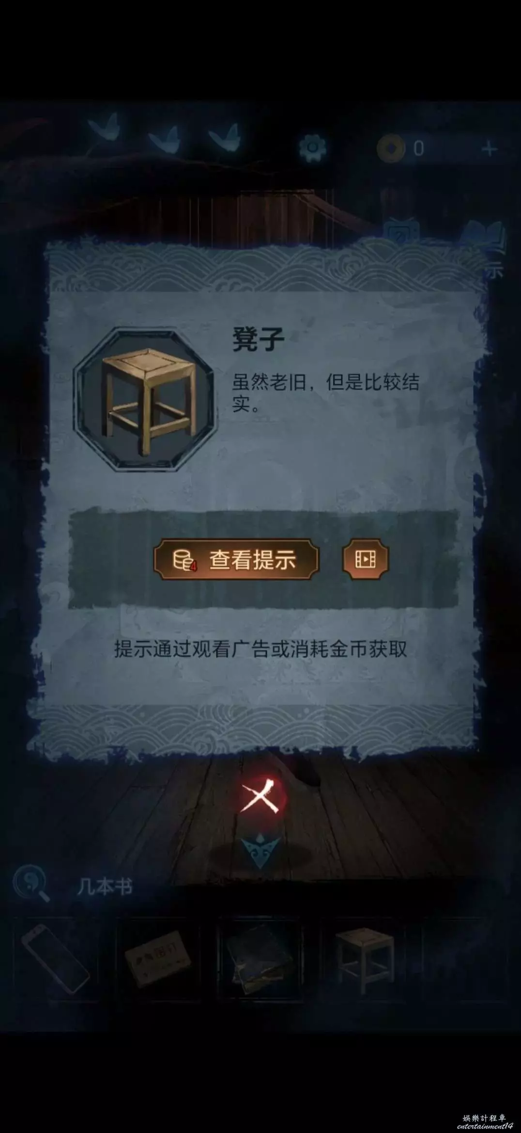 將凳子和書放在牆角,用手機墊凳子腳,點擊上面的門拉開梯子