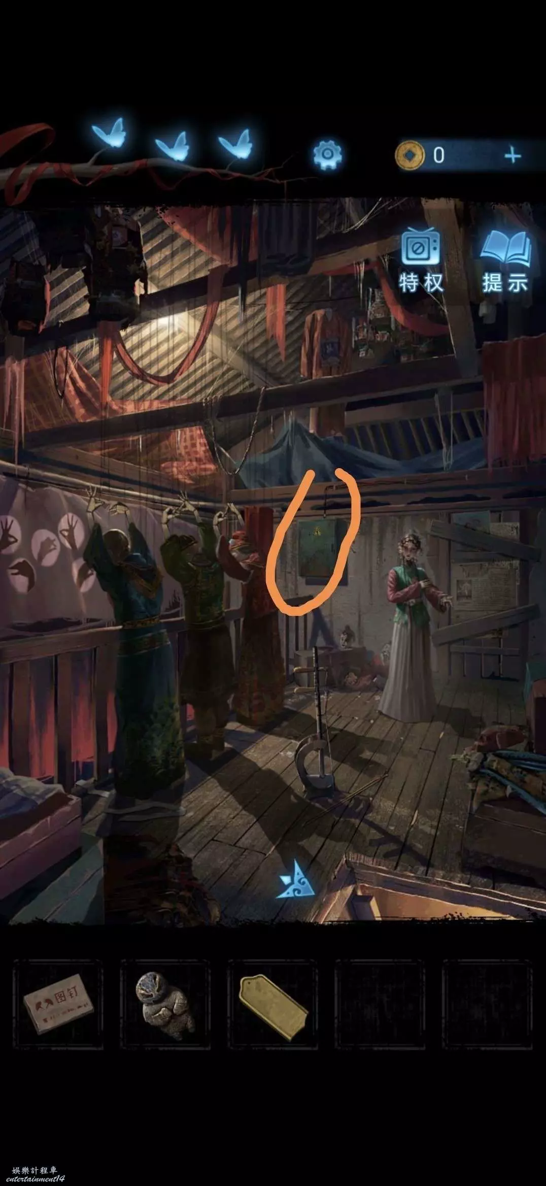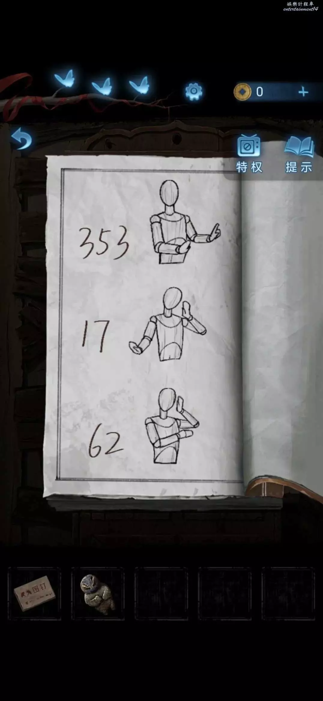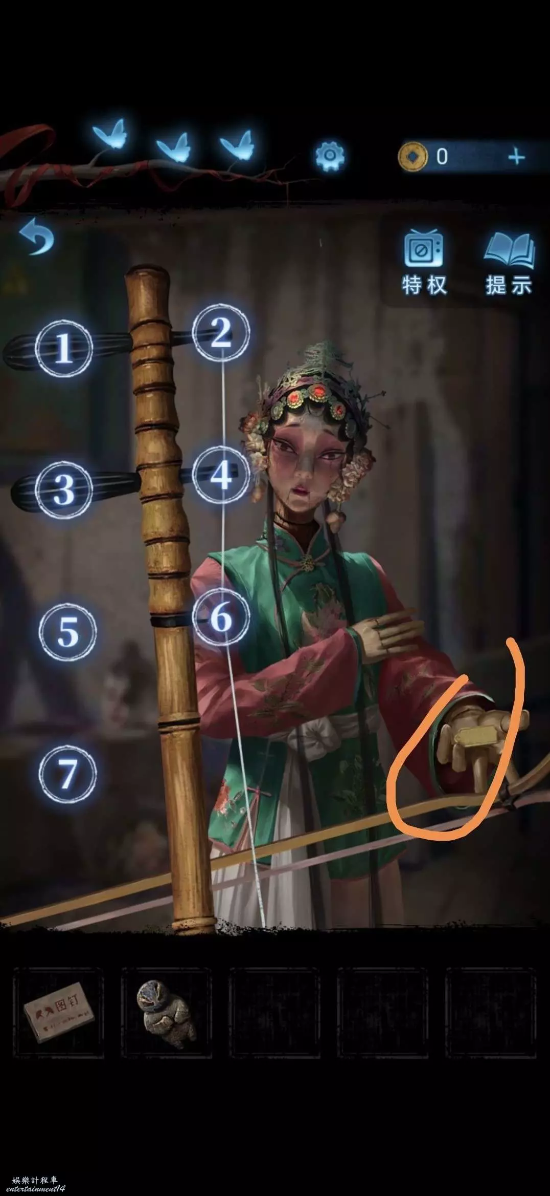 做小遊戲,根據後面女人偶的姿勢和書上的資料點擊相應數位,木偶腦袋上的三個能量堆亮了後伸手,點擊獲得小牌子