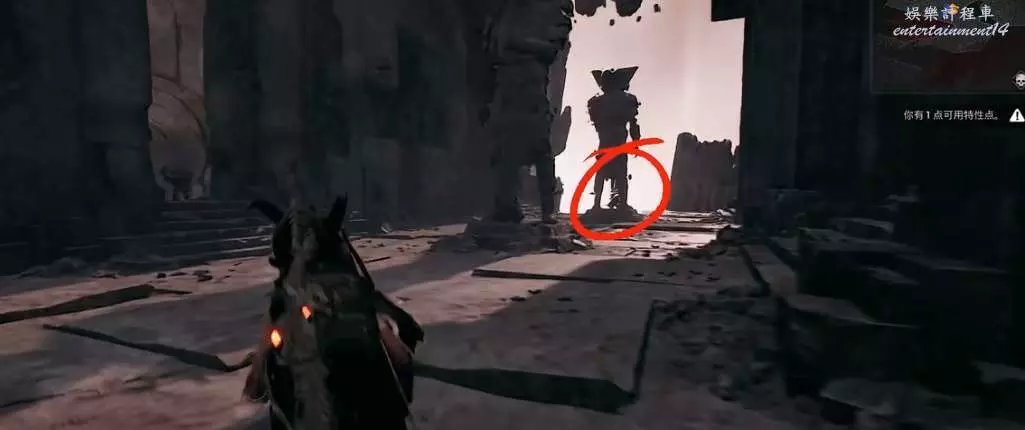 破碎入口左轉上樓可以在雕像處獲得碎片重鑄戒指。