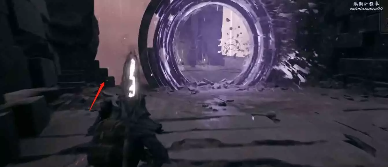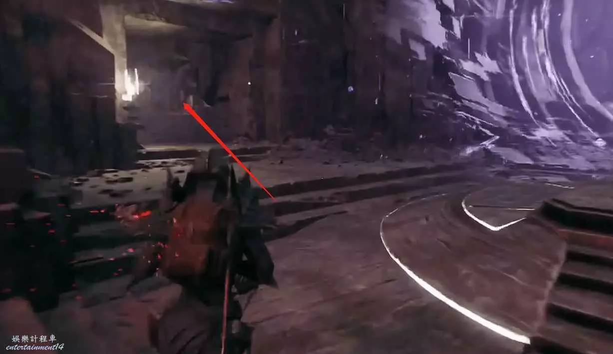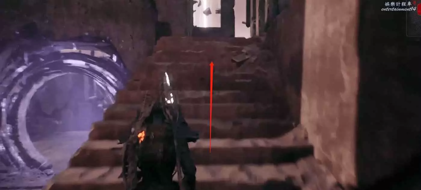 破碎入口右轉上樓一直走,穿過第一個傳送門。