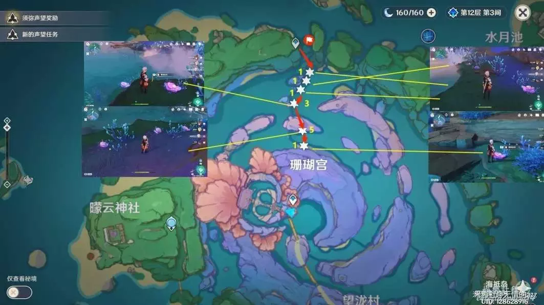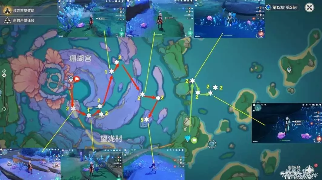 整個珊瑚宮北部區域的珊瑚珍珠呈條狀顯示,我們可以從傳送錨點往下飛,進行沿路採集,非常的方便,且數量不錯