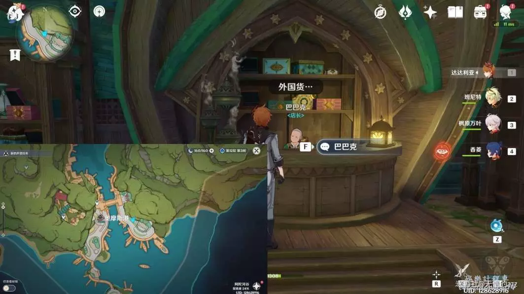 在我們3.0版本更新以後,我們購買物資的地方可不止一處,我們還可以來到須彌的奧摩斯港,找到NPC巴巴克老爺爺,購買5個珊瑚珍珠