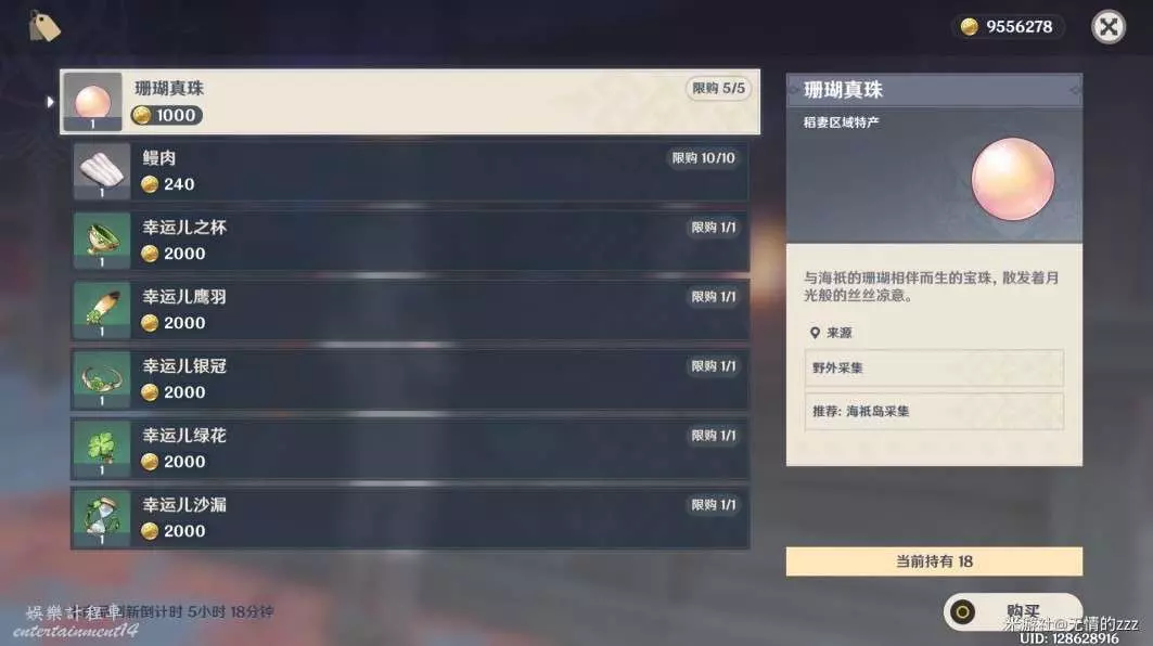 我們還可以來到稻妻的離島,找到我們的商人NPC山城健太哥,去購買5顆珊瑚珍珠,因為珊瑚珍珠的總體數量不多,要是比較急缺,或者是懶癌發作的活動可以考慮