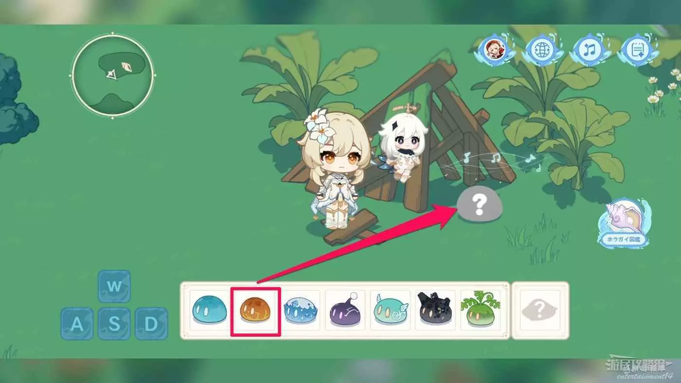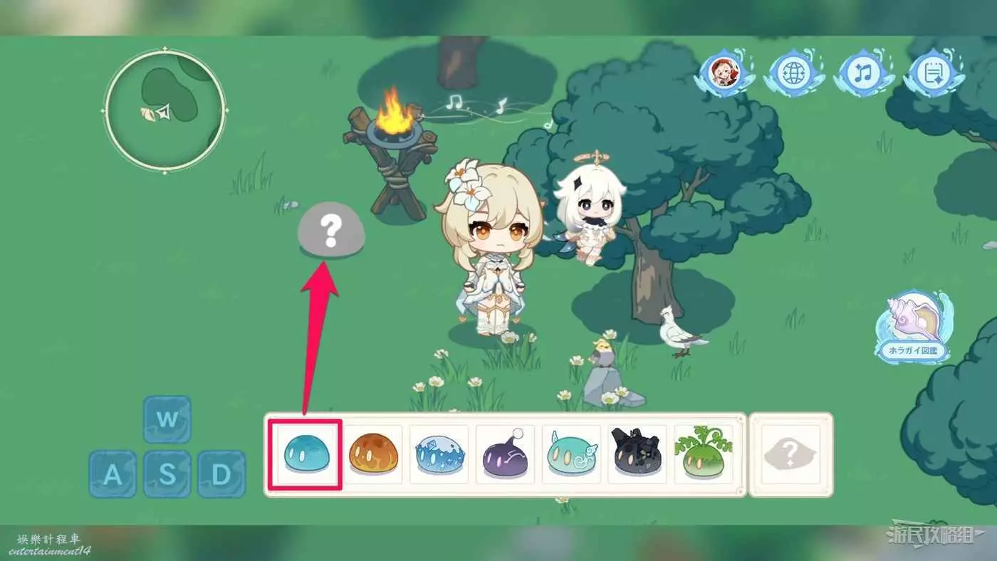 3.點擊發光的草史萊姆。