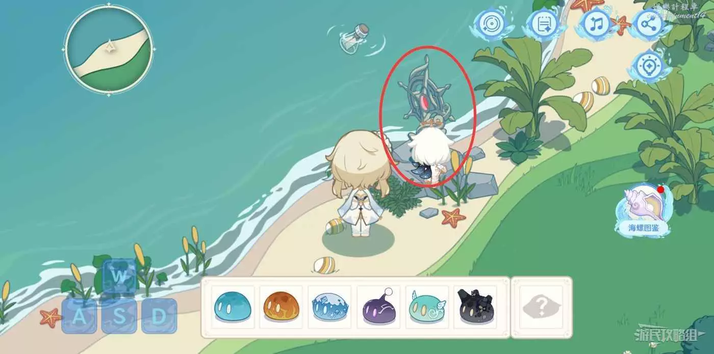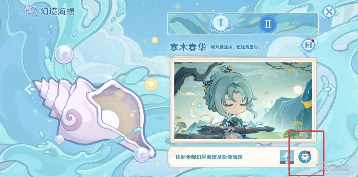 找到所有海螺後,打開介面右側的【海螺圖鑒】,點擊右下角的寶箱標誌。