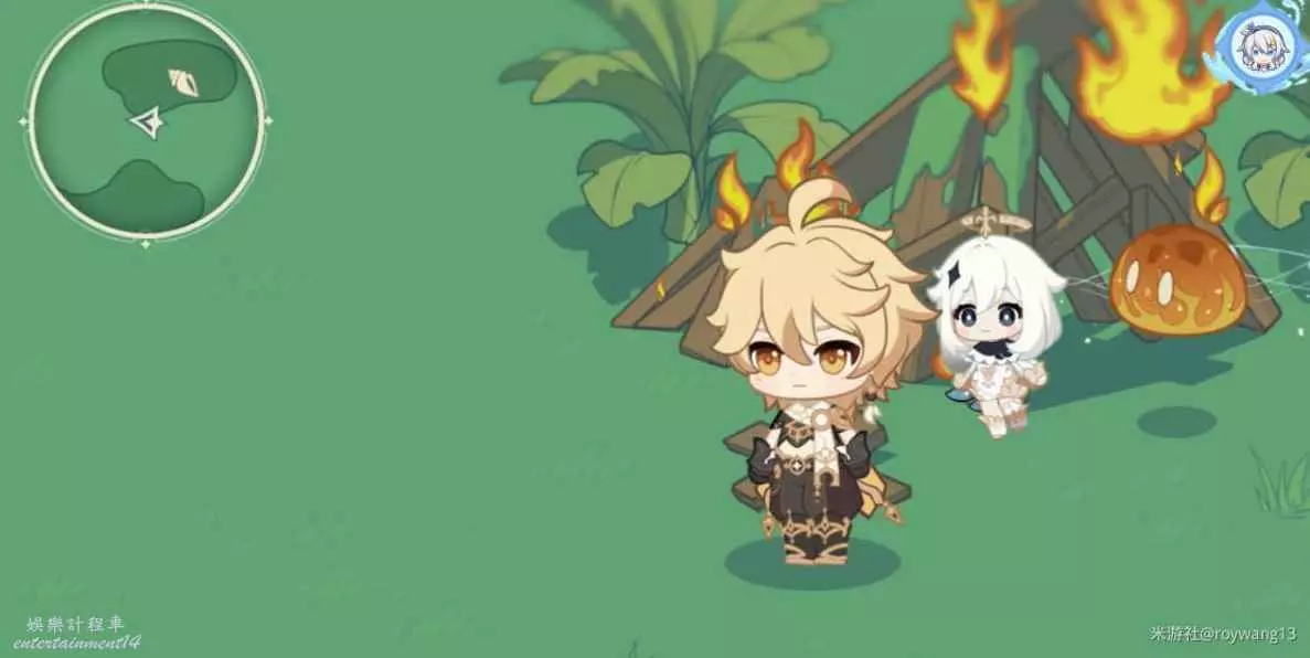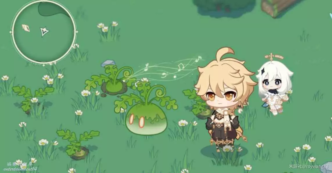 原神 (Genshin Impact) 3.8螺音憶夢H5全海螺解謎攻略 27 7 月 2023-07-27 廣告 作者:roywang13 來源:米遊社論壇 1.點擊樹葉 2.草史萊姆 3.火把附近放水史萊姆 4.樹葉放風史萊姆 5.湖面放冰史萊姆 6.火史萊姆 7.跟隨盜寶鼬 8.放置魚肉 9.此處有海螺和魚肉,需要點擊浪船錨點 10.電氣水晶旁放火史萊姆 右上角大致位置可參考