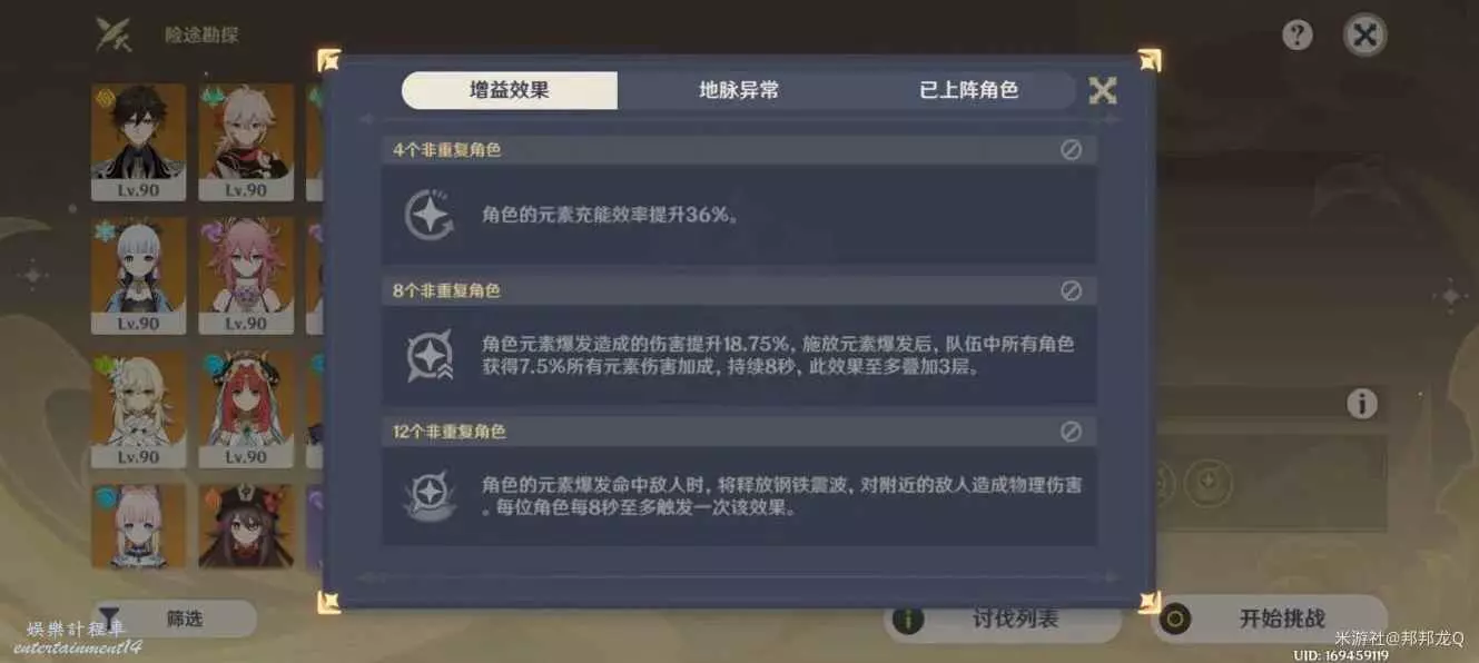 對於這個buff,我今天打絕境突然感覺,感覺不用刻意的根據buff選角色,不然後面你12個不重複,還得兼顧buff吃滿和怪種類問題,要考慮的有點多了。然後細細看buff的話,第一層竟然加充能,你會想這次加成很有用啊。(通過我打了倆輪發現,裡面產球少得可憐,加了這第一層buff的充能效率才能比你原有的迴圈水平高一丟丟)第二層buff尤其關鍵,不僅加元素爆發傷害還加全隊元素傷害,極其極其適合各種國家隊(除去草國),第三層我感覺可以隨緣,第二層buff吃到就行了。不過我們絕境肯定要吃滿的