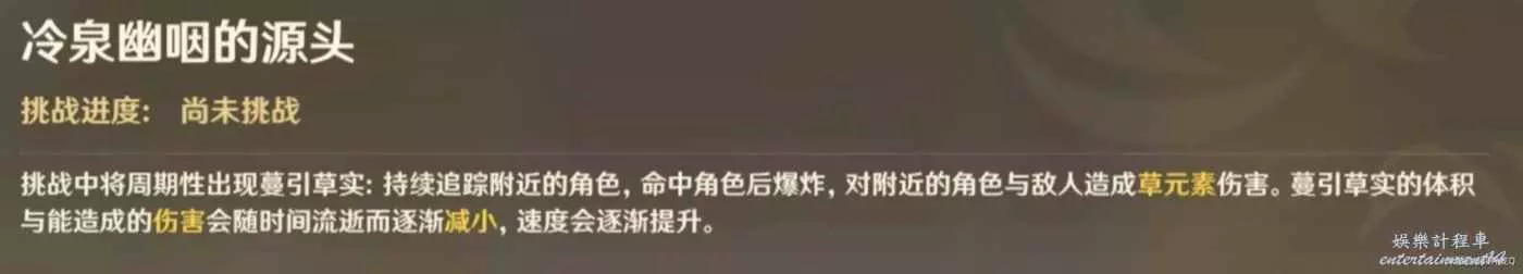 這個是過一段時間就有一個草元素攻擊同時攻擊你和怪物,我感覺不用管,你有生存位就行了。不過這個攻擊會與水等元素反應,如果有不能草元素介入的隊伍可以換一下