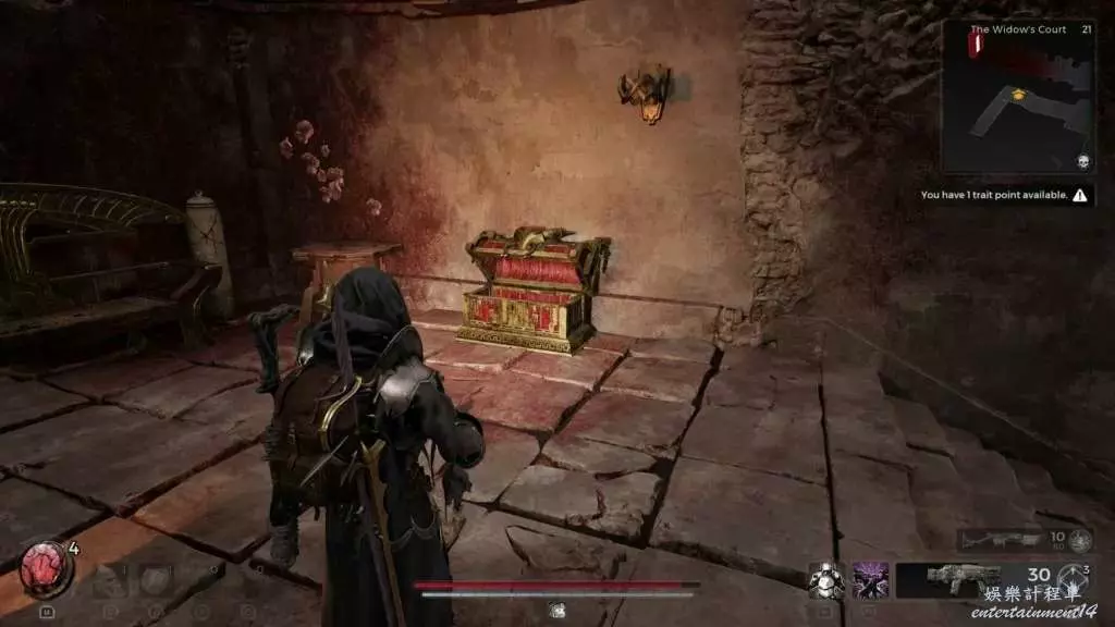 首先正常推進紅王座的任務,直到到達紅寡婦王庭,參考下圖位置找到華麗的箱子。