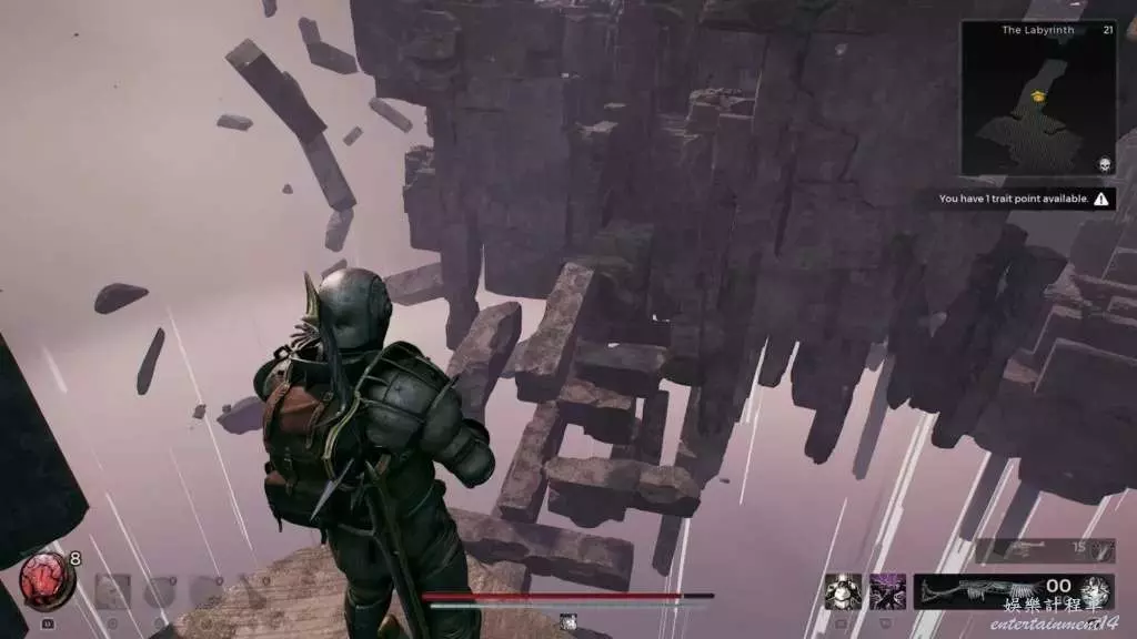 需要從迷宮的破碎入口返回存檔點,走左下方的路到達傳送門所在位置,不要進入傳送門,參考下方圖片繼續前進。跳下平台落在橋上,繼續前進看到一個裂隙,這次使用前面提到的傳送門,然後擊敗敵人即可拾取。