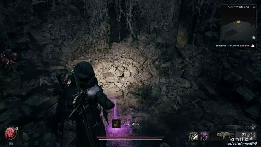 前往根土的最後一個區域灰燼荒地,按照正常路線前進至第一個存檔點。然後參考下圖位置。進入下層穿過縫隙即可找到。