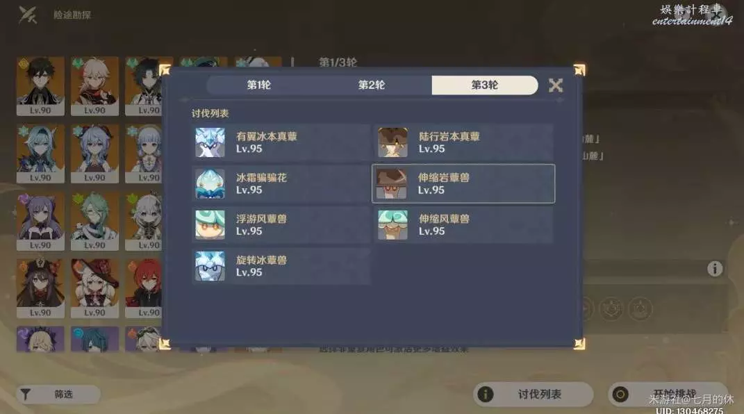 第3個buff吃不吃無所謂,新手角色池不深,可以重複前2輪的隊伍。可以考慮加入萬葉聚怪的擴火隊伍。不建議帶純冰/岩/風傷隊伍。