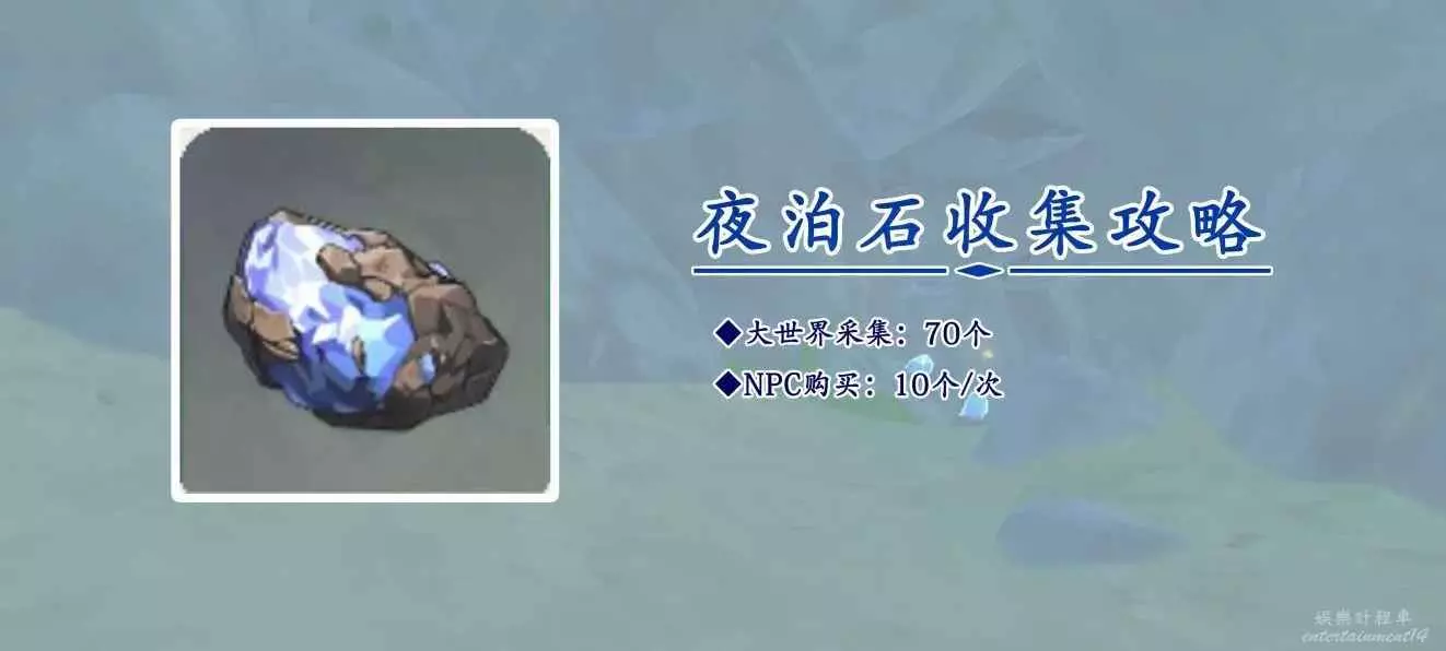 ·由於層岩巨淵地下礦區夜泊石分佈比較特殊,打碎一處採集點可以採集兩個。層岩巨淵地下礦區就以未採集前的數量為准,即只統計採集點,不統計具體採集數量。