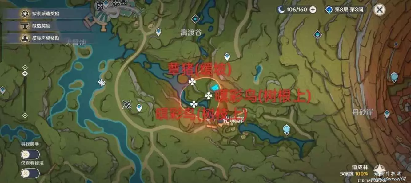 原神 (Genshin Impact) 傳心同視活動Day1動物點位