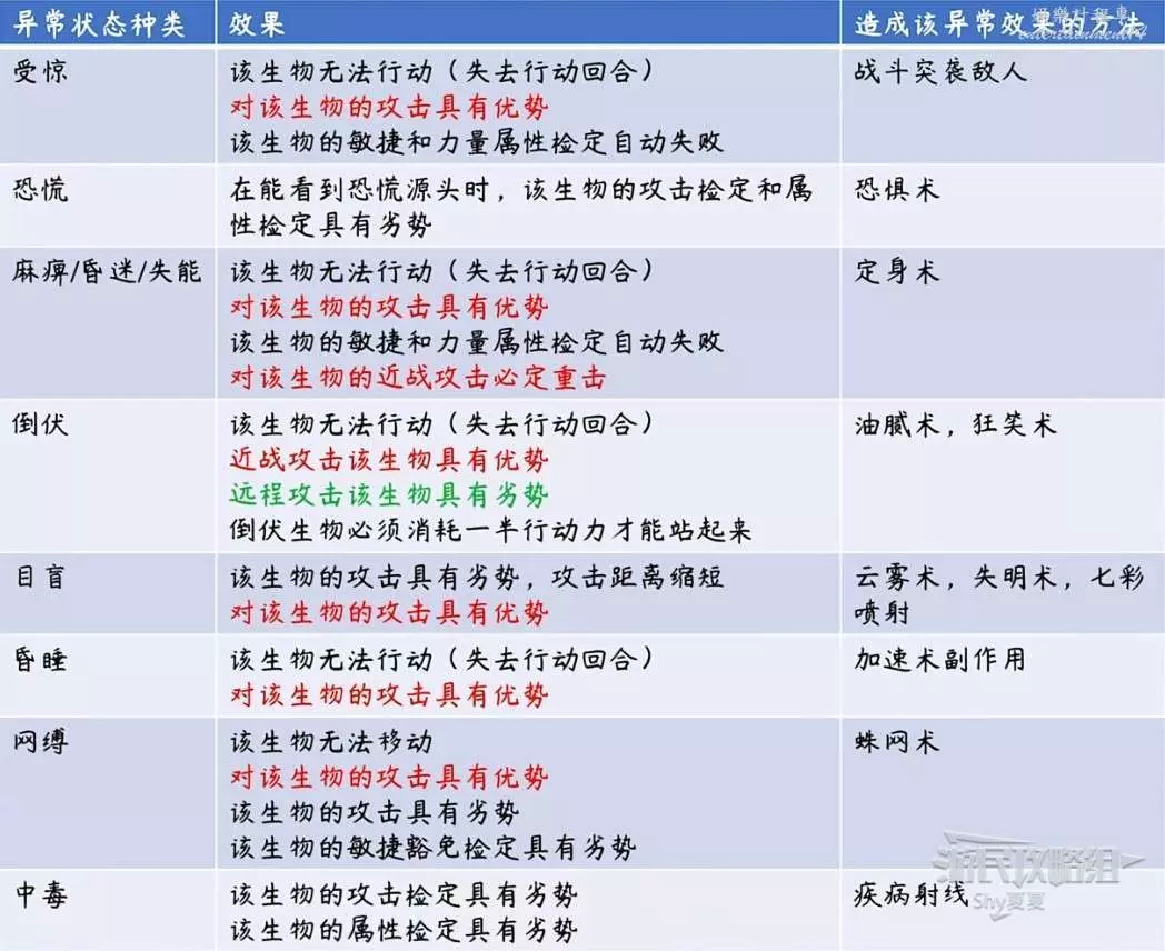使敵人陷入一場狀態可以造成優劣勢,具體如下: