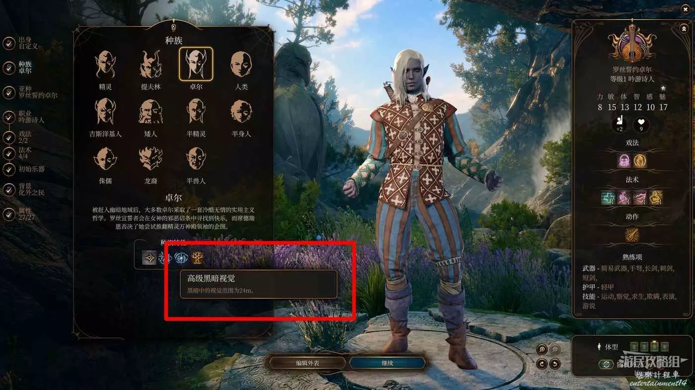 擁有高級黑暗視覺的種族包括:卓爾、灰矮人和地底侏儒。