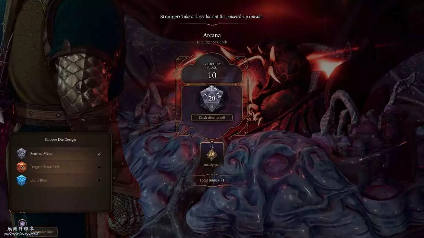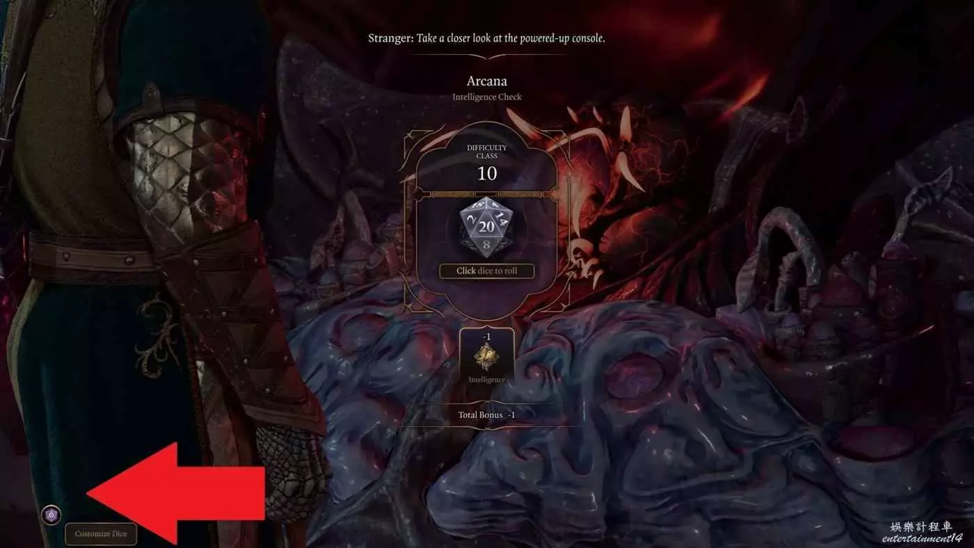 柏德之門 3 (Baldur’s Gate 3) 更換骰子皮膚方法 4 8 月 2023-08-04 廣告 作者:瑞破受氣包 來源:遊民星空 更換骰子皮膚方法 首先需要觸發擲骰子的動作,在擲骰子之前點擊左下角的按鈕(參考下圖)。 打開左下角功能表後即可選擇自訂的骰子皮膚。 選擇皮膚後即可更換成功。