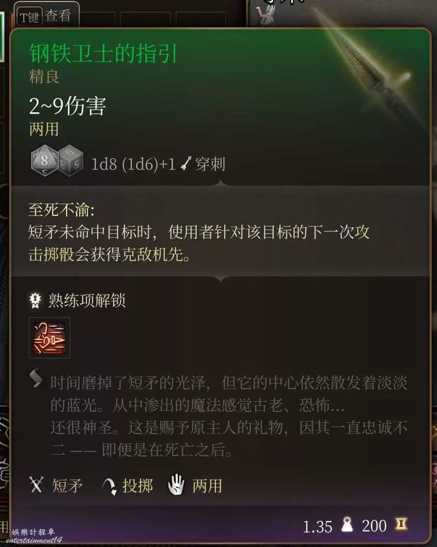 來自於大師武器任務,首先得在地圖中間村莊中間的屋子找到隱藏鐵匠鋪,最簡單的方法就是打破一層的蜘蛛網然後跳下,在一個陷阱箱子中可以發現一個配方開啟任務。