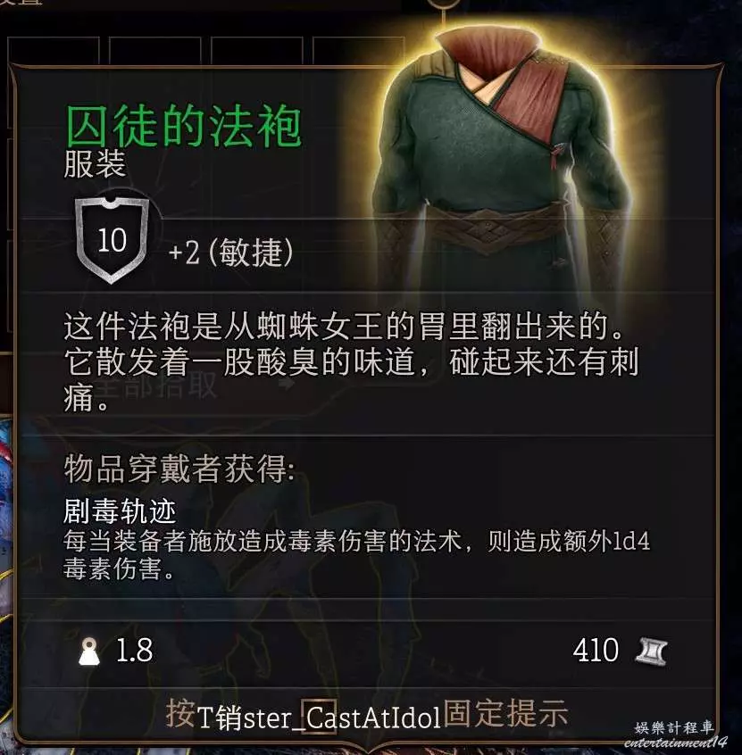 從在德魯伊營地監獄旁邊隱藏過道中昏迷的人身上偷取獲得