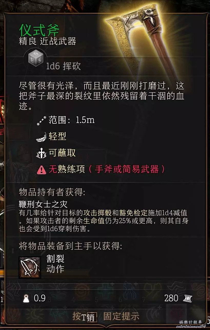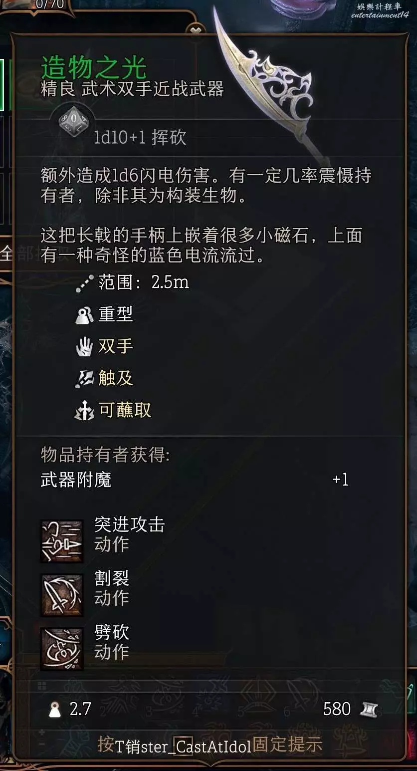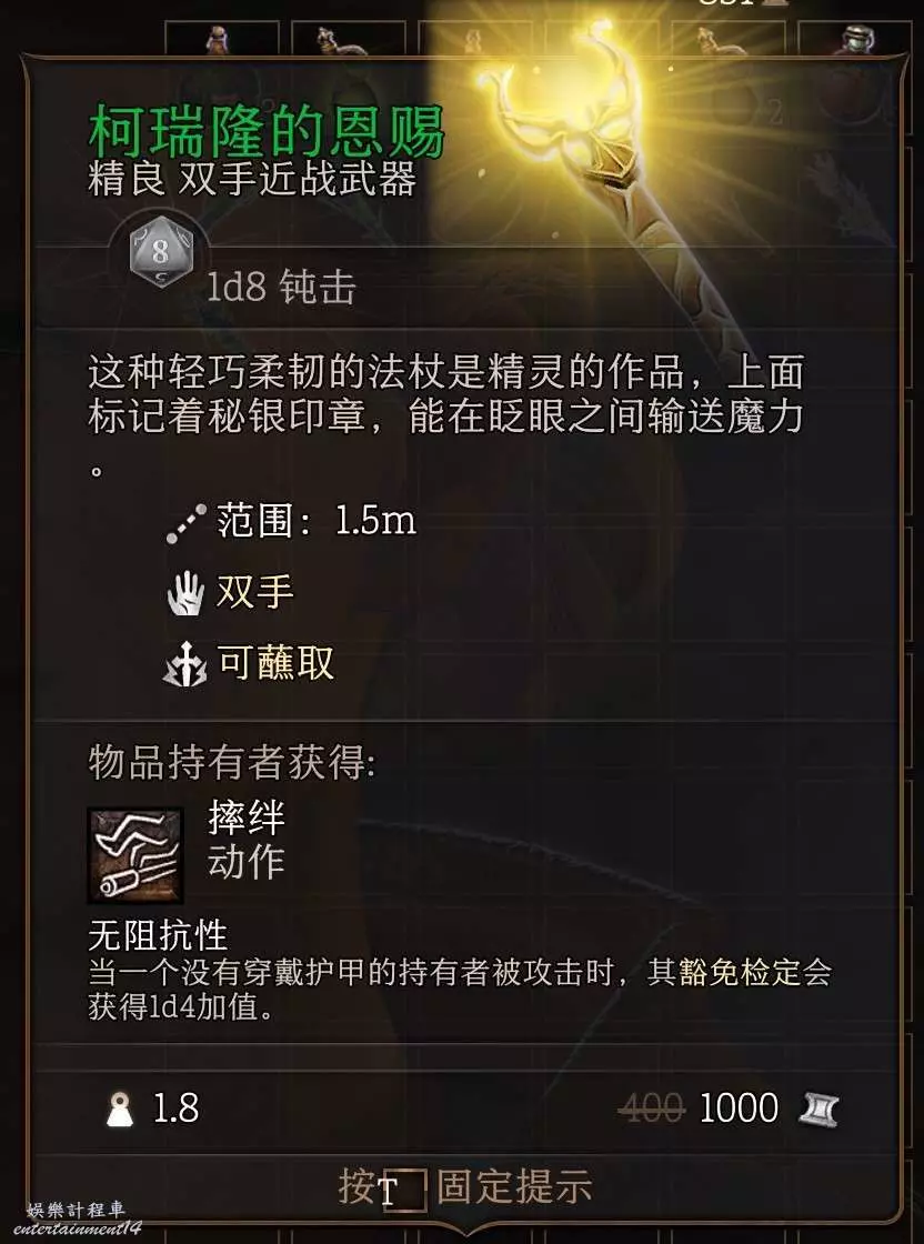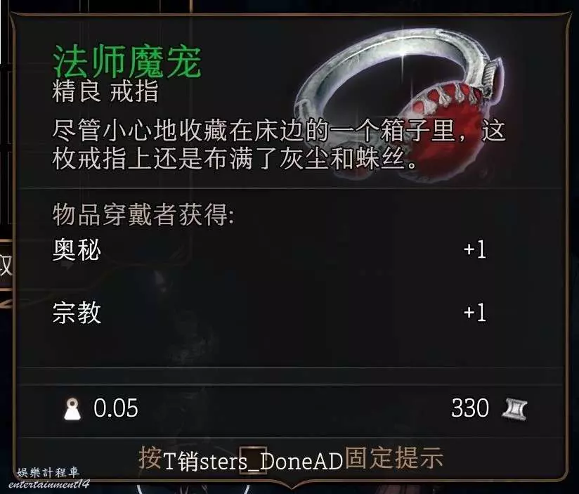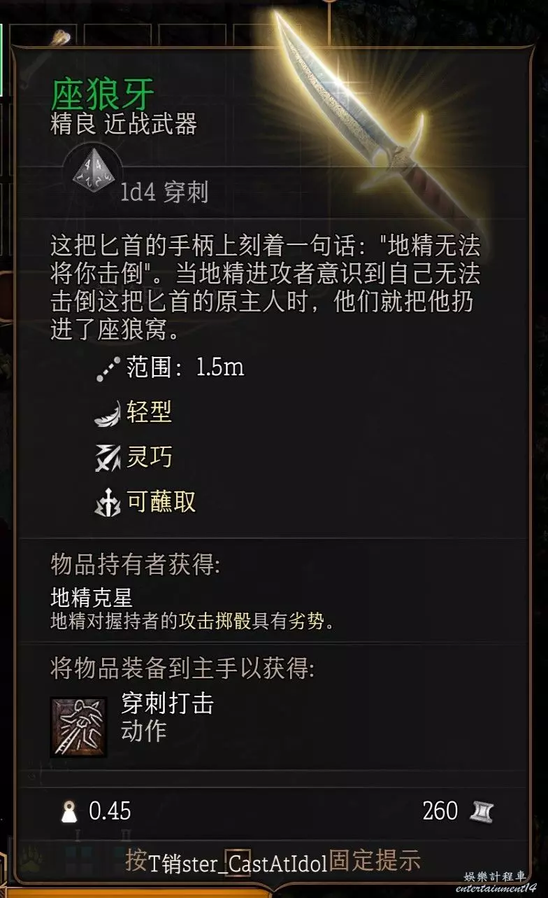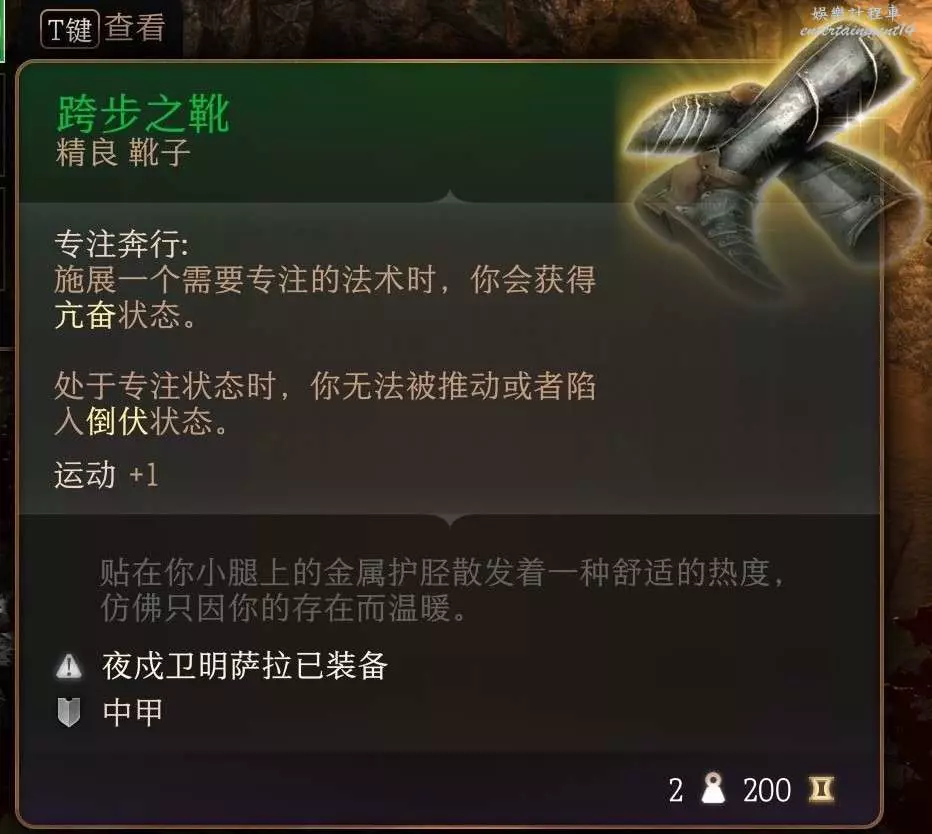 非常隱蔽的一個裝備。在奧術塔頂樓左邊的角落裡有一張不起眼的小凳子,把凳子扶正了之後做下去人物會說自己充滿了拋瓦。我就覺得有問題,快速存檔之後把凳子砍碎果然掉了裝備。只能說Larian果然有點東西