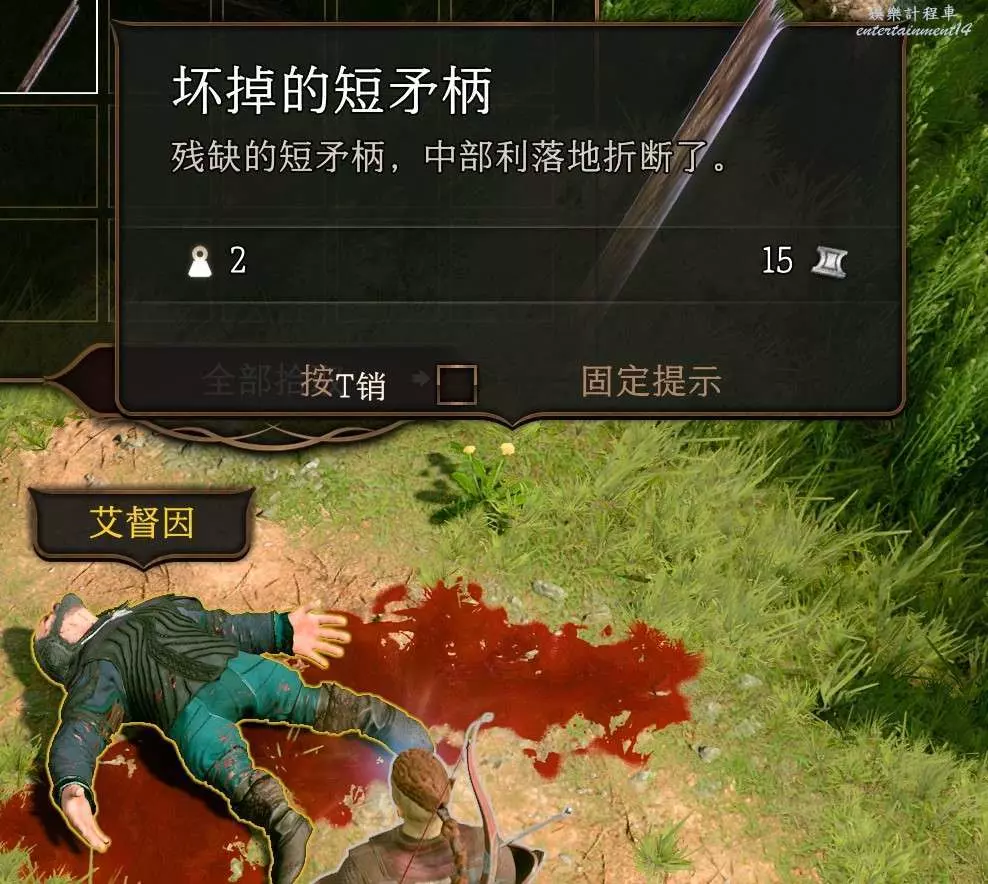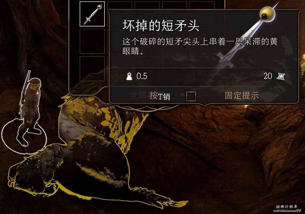 在被豺狼人圍困散塔林商隊的山洞口左側的一具屍體上