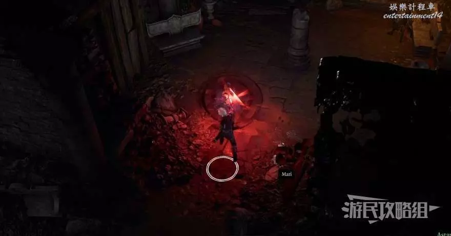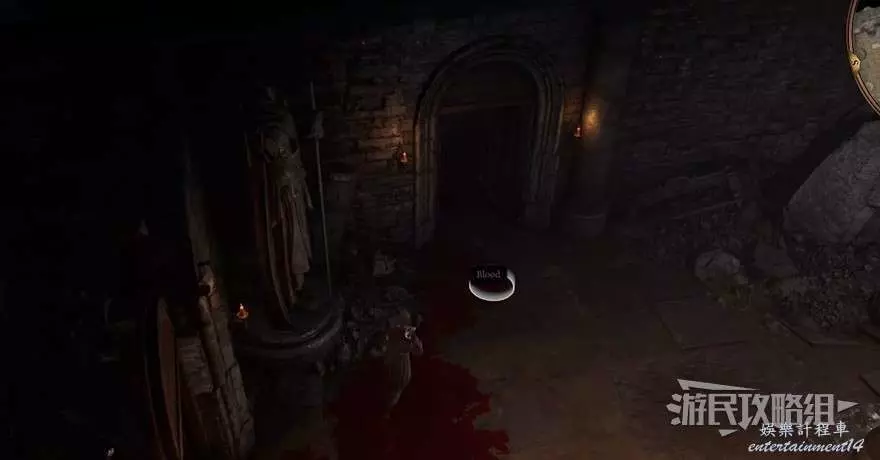遇到尋寶者後,前往上鎖的門處,點燃門旁邊的蠟燭即可開啟大門,進入陰暗墓穴。