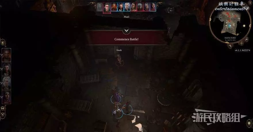 從禮拜堂通過遊說進入前門會觸發戰鬥,戰鬥結束後前往餐廳中間,擊敗該區域巡邏的敵人,需要注意的是如果在巡邏的敵人處於高度戒備的狀態下與其戰鬥,敵人就會向餐廳內部逃跑尋求支援,建議先潛行靠近等敵人轉身時將其擊破,再與其他人戰鬥。