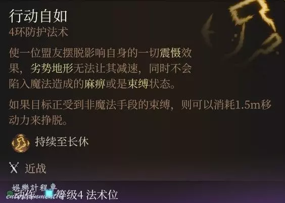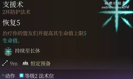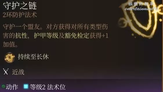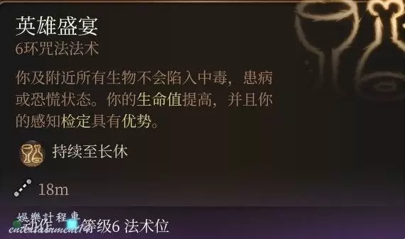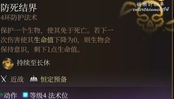 所有的傷害抗性,光這一條就是無敵般的存在,更不提後面還有AC以及豁免+1;但是要注意即使是在營地,工具人也會掉血,一旦死亡BUF就會消失;因此工具人最好是體質拉滿,這個法術只建議給隊伍的主C釋放。