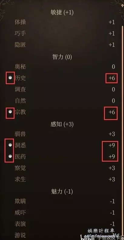 而因為智力只有10點,所以 歷史、宗教 只吃到熟練項加成