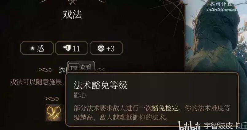 例如 戲法、法術攻擊,可能有些效果會受到敵人的豁免檢定,需要你自身的 法術豁免等級(可以理解為 法術命中率) 足夠高