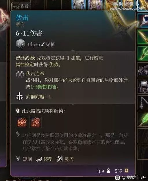 利文頓鐵匠鋪下面的商店購買,根據之前經歷的冒險過程來看這個伏擊連殺的特效是用法術或其他武器也會生效的,輕巧短劍可以放副手也許讓法師帶一個不錯。