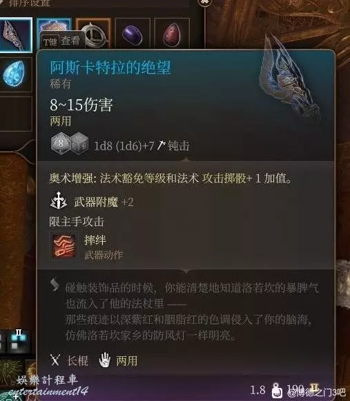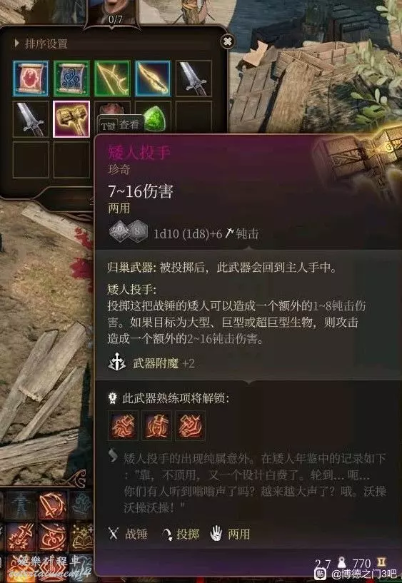 附魔+2的兩用錘子還有適配投擲流的特效,可惜強力的特效只有幾乎沒人選的矮人種族才能觸發起源隊友也沒有一位是矮人的情況下這把武器可以說是有點雞肋了,獲取方式同上。