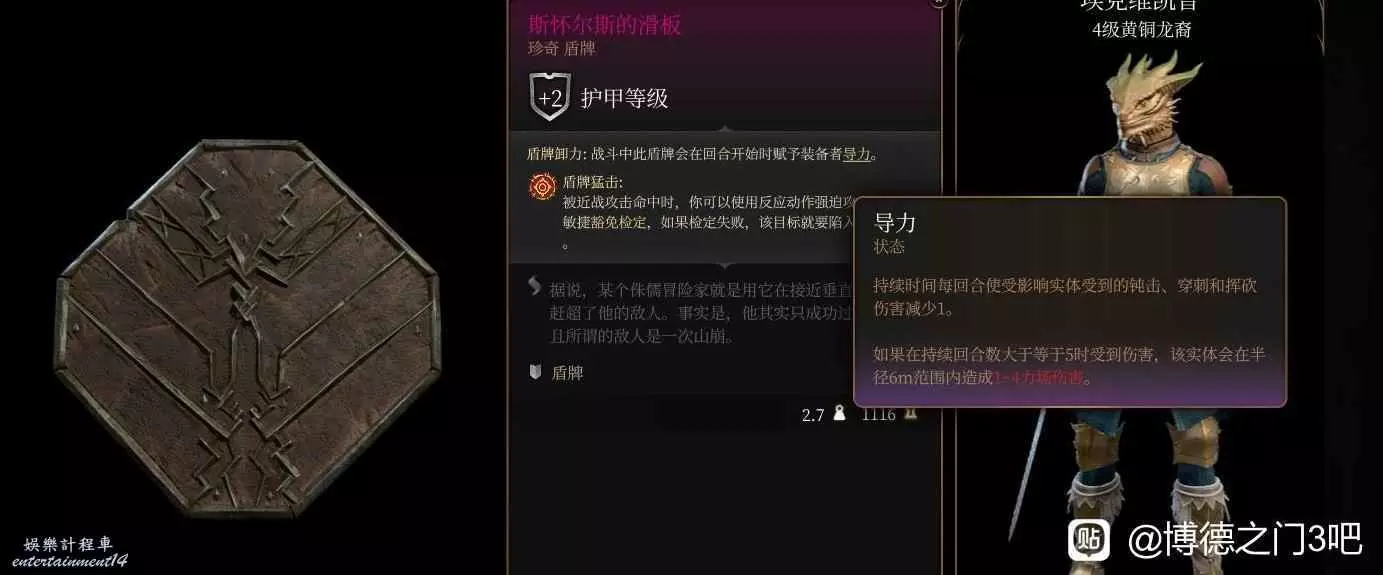 面板一般沒有武器附魔的同時其特效還限定副手才能觸發而且豁免成功只需要大於等於13就能過,即使成功了施加的凍僵特效也沒啥用,(冰霜傷害翻倍)護甲等級+1也沒啥用,冰法拿在副手也許有用?但我為什麼不拿凱瑟裡克的盾呢?