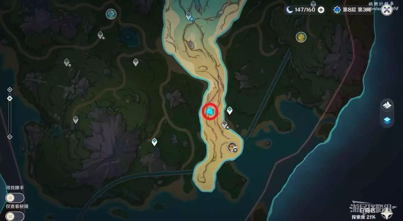 原神 (Genshin Impact) 鐵甲熔火帝皇位置及路線 16 8 月 2023-08-16 廣告 作者:瑞破受氣包 來源:遊民星空 傳送到下圖紅圈位置的傳送錨點,潛入水下,前往黃色星標位置。 星標位置就是鐵甲熔火帝皇所在洞窟的入口,可以在地圖介面切換分層地圖來查看具體位置。 到達星標位置後往下看,可以看到通往深處的洞,一直往下潛。 到達洞的另一側即可看到水下傳送錨點和鐵甲熔火帝皇。