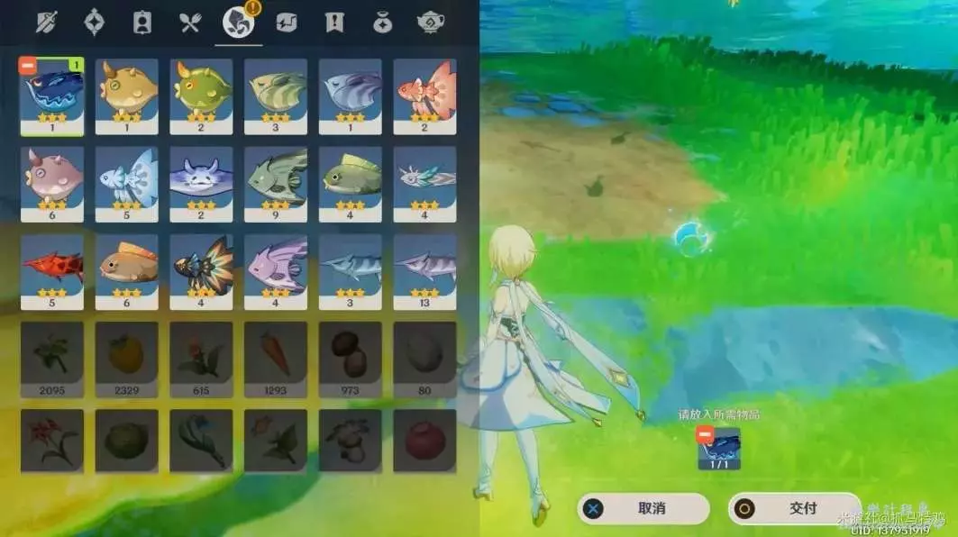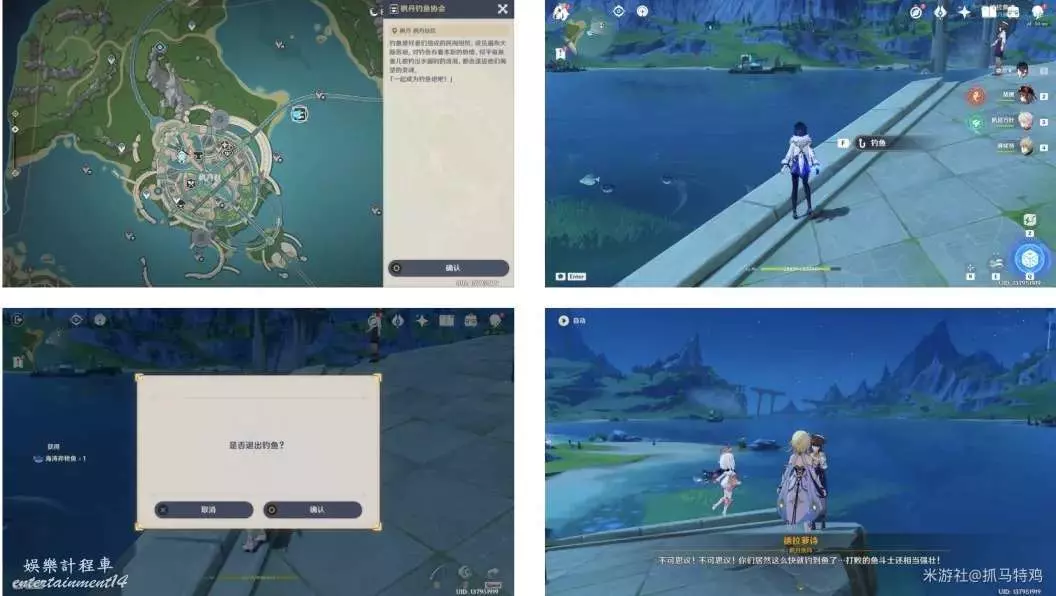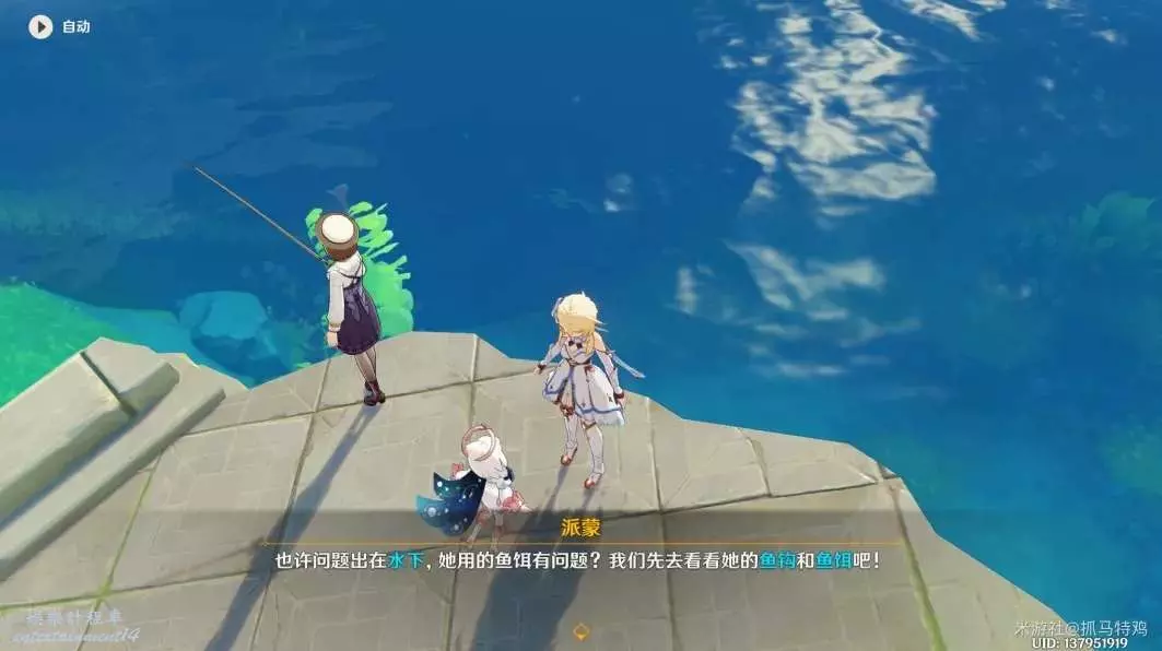 原神 (Genshin Impact) 4.0空軍釣魚佬隱藏任務攻略 16 8 月 2023-08-16 廣告 作者:抓馬特雞 來源:米遊社論壇 任務接取方式 在楓丹釣魚協會旁邊釣上任意一隻魚。 釣上魚後,選擇退出釣魚,將自動觸發對話。 任務流程 (1)根據派蒙的提示,潛下水,找到德拉蘿詩的魚鉤 (2)與魚鉤對話,掛上一隻魚 (3)回到岸上與德拉蘿詩對話即可完成任務,獎勵原石*20。