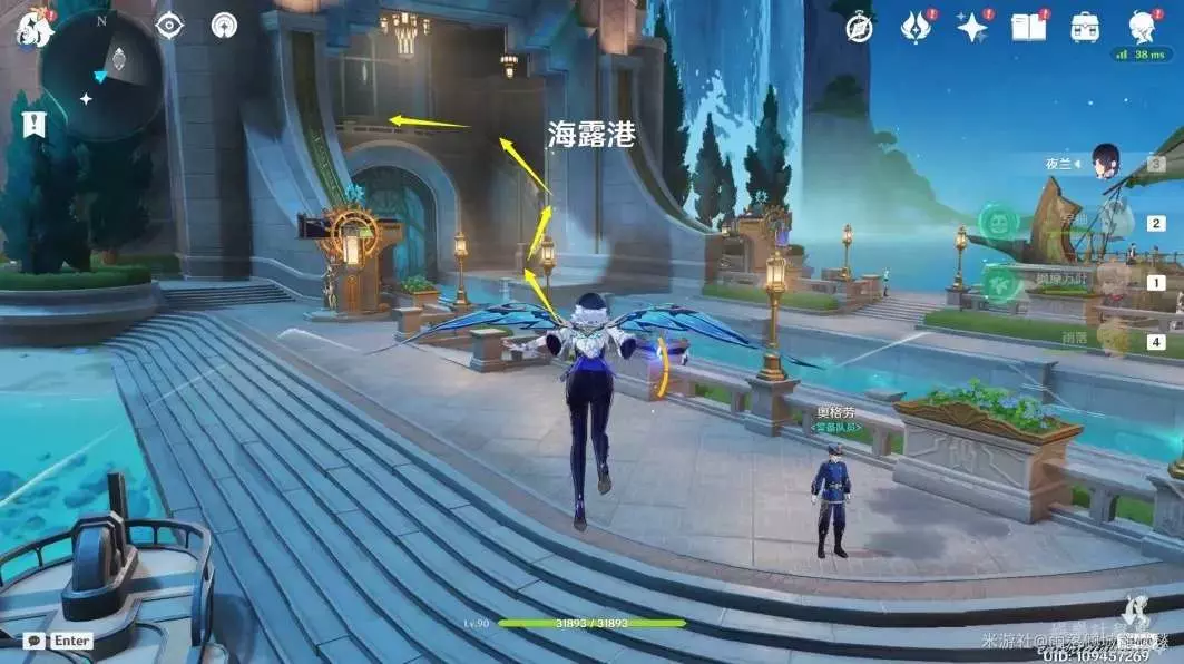 自動解鎖的錨點位於須彌右上角,可以直接傳送過去,飛到海灘下面有個浪潮錨點,借助浪船快速抵達楓丹的第一處港口。
