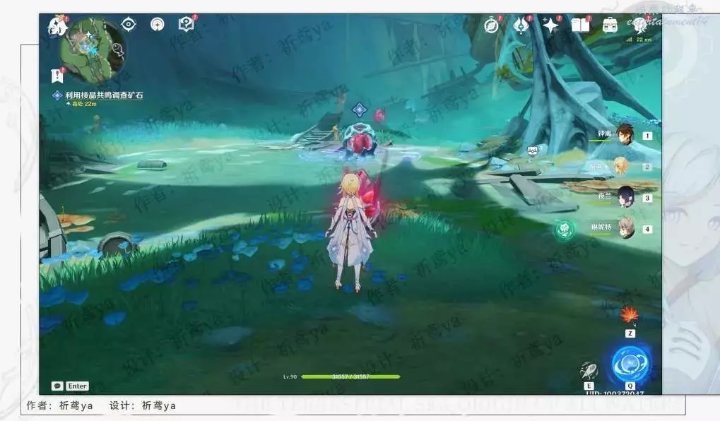(1)先擊碎礦石,之後拾取水種子,啟動3個偵測機關