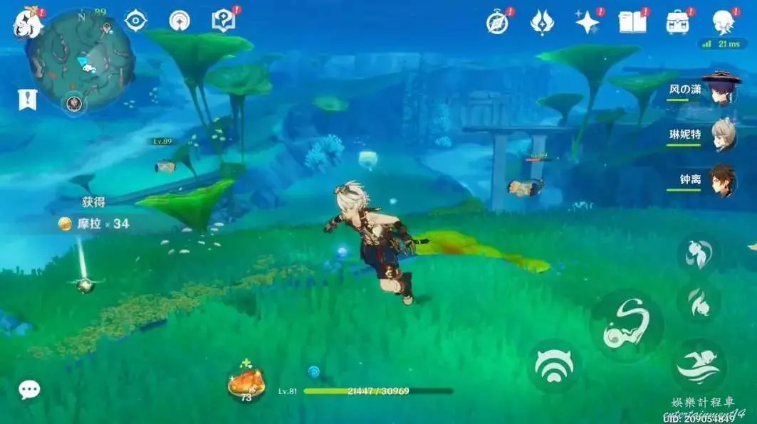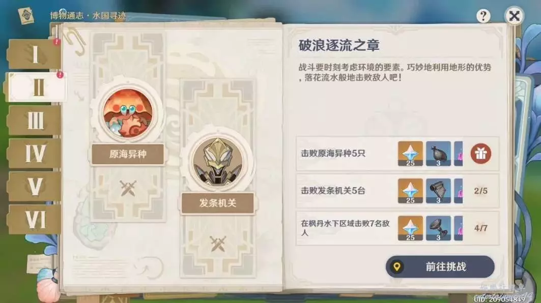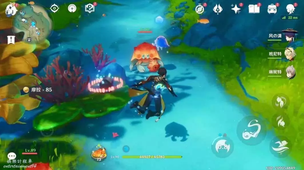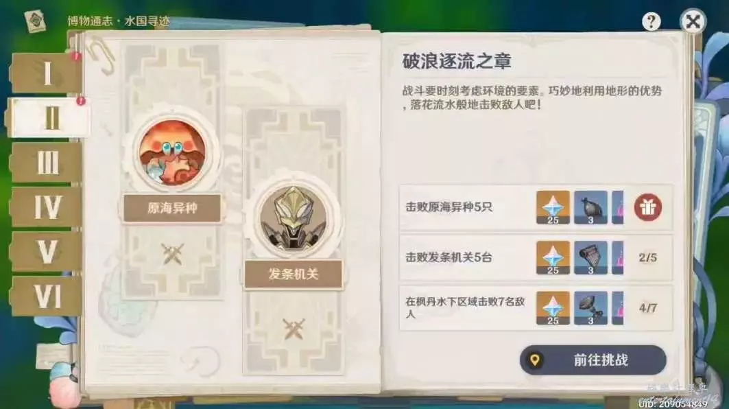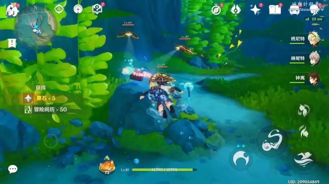 海洋裡擊敗7個怪物挺簡單的,只要前兩個打完基本就好了,在海裡打怪可能有些怪怪的,可以看周圍有沒有帶光的魚,長按普攻,然後可以獲得另類的“元素戰技”,打怪會獲得不少幫助