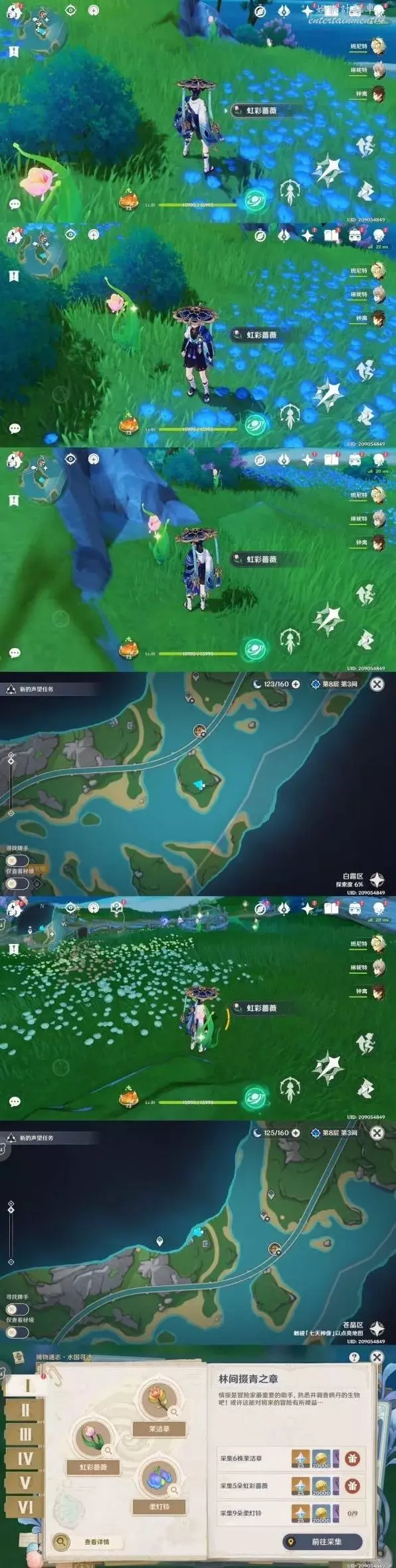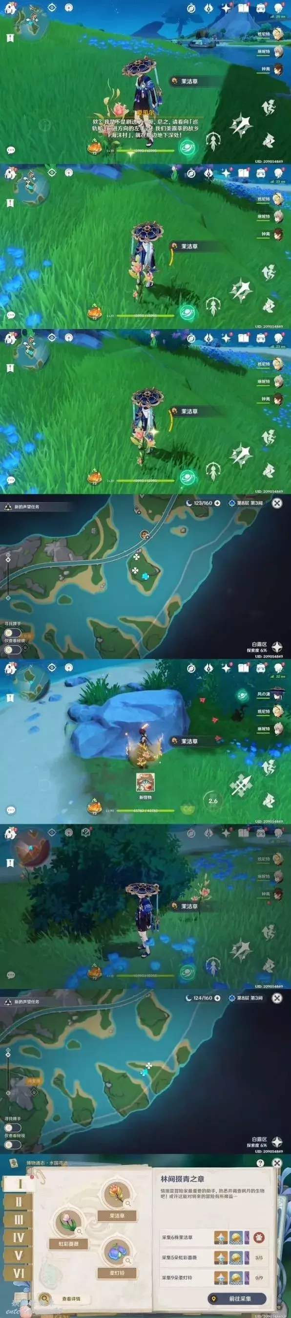 這一章我們要採集這三種植物,在大世界隨便跑跑可能能找到,但是看運氣,所以跟我抄作業吧。