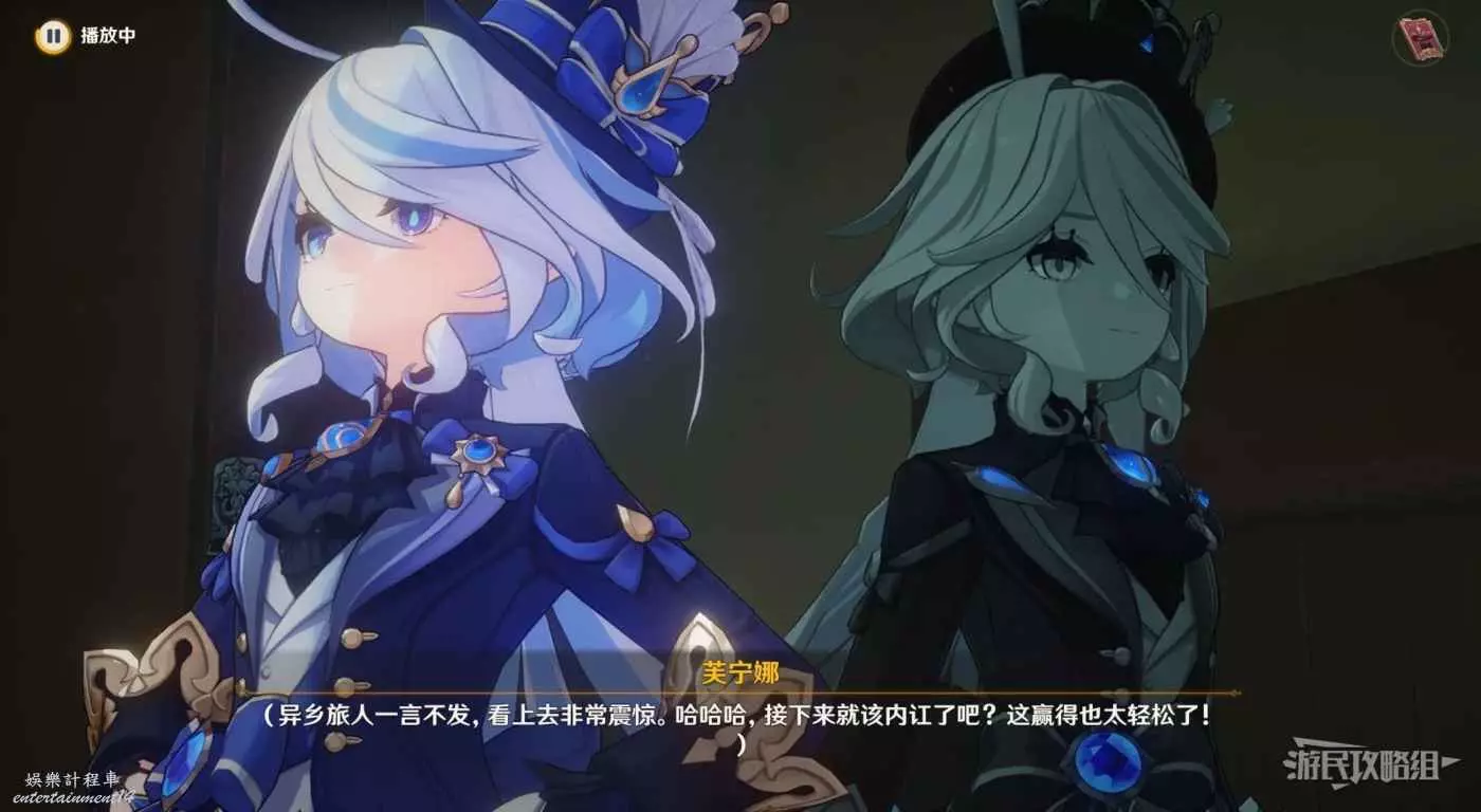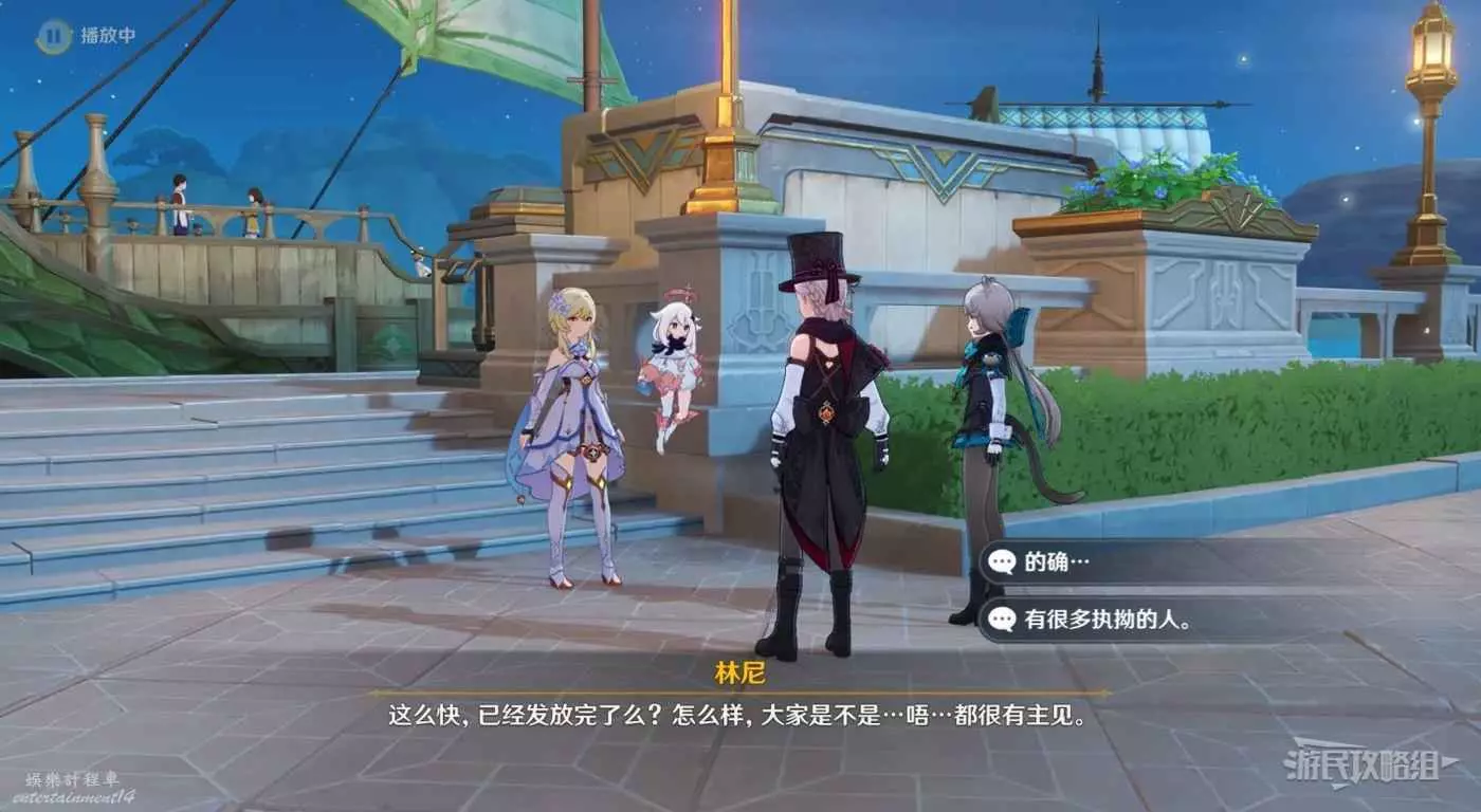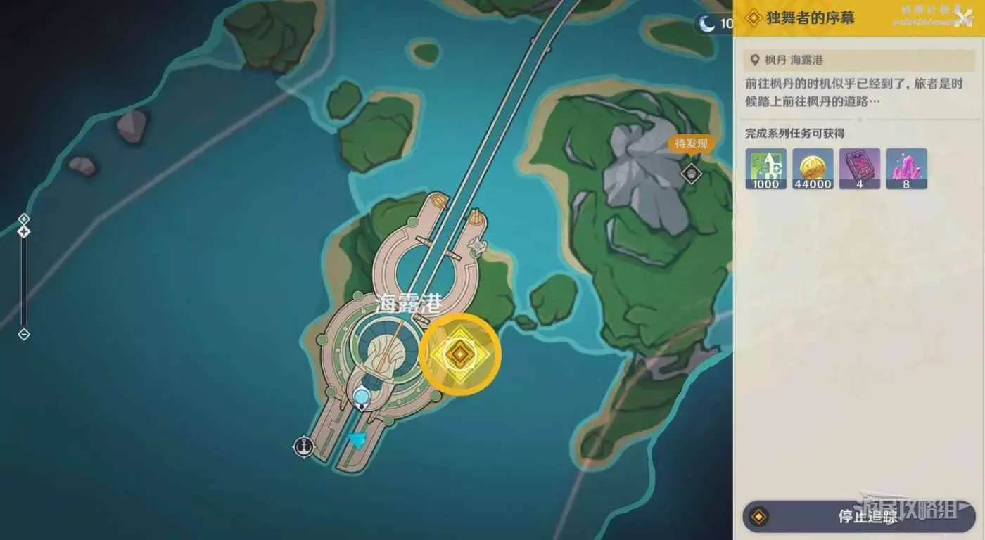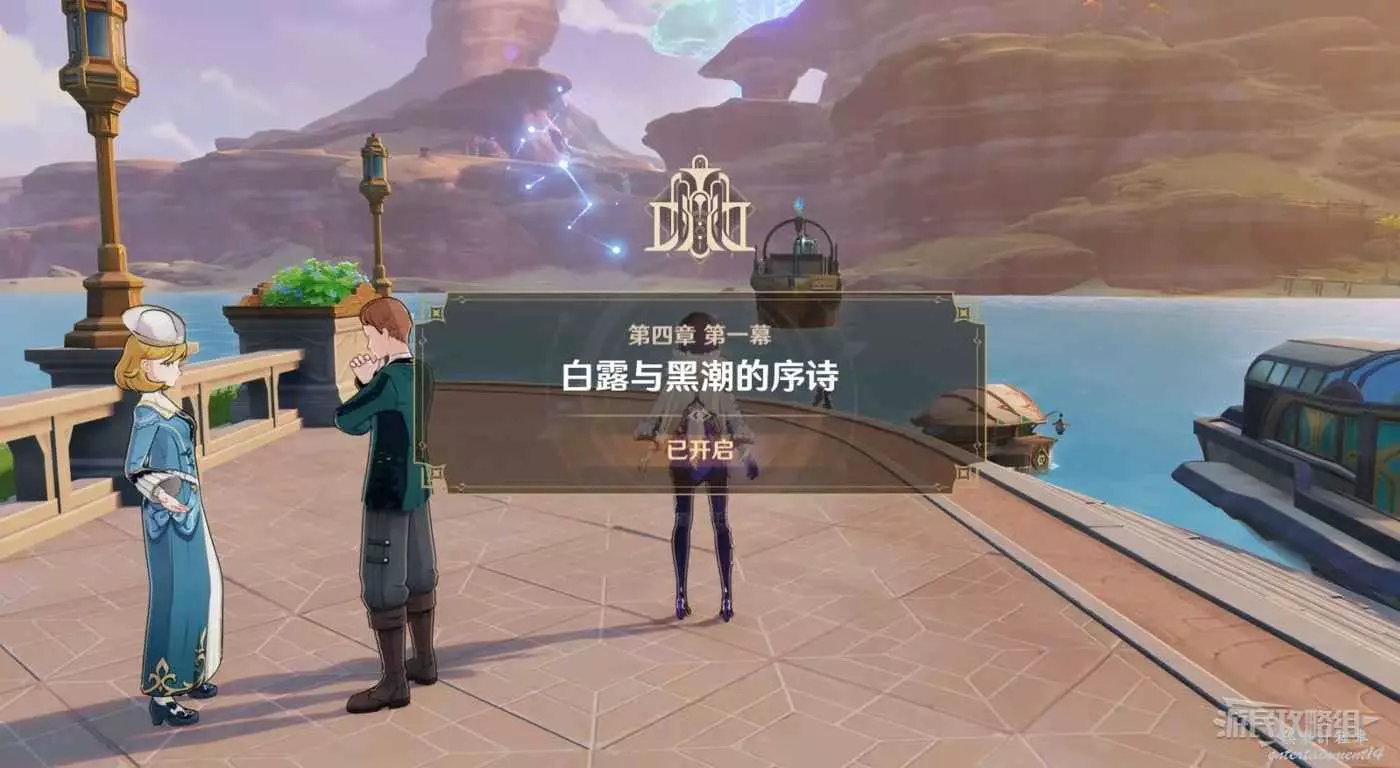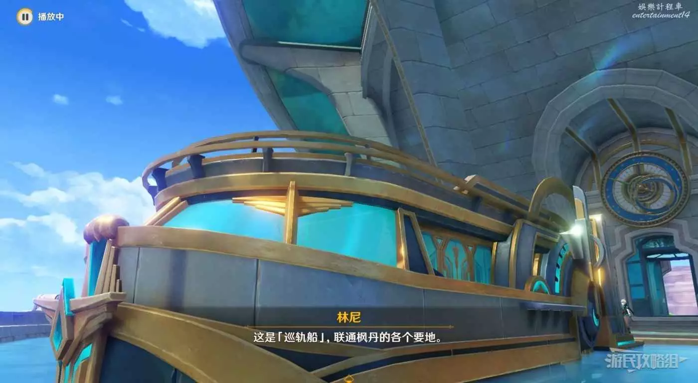 對話結束後,前往目標位置乘坐巡軌船前往楓丹亭,自動觸發劇情。劇情結束後任務完成。