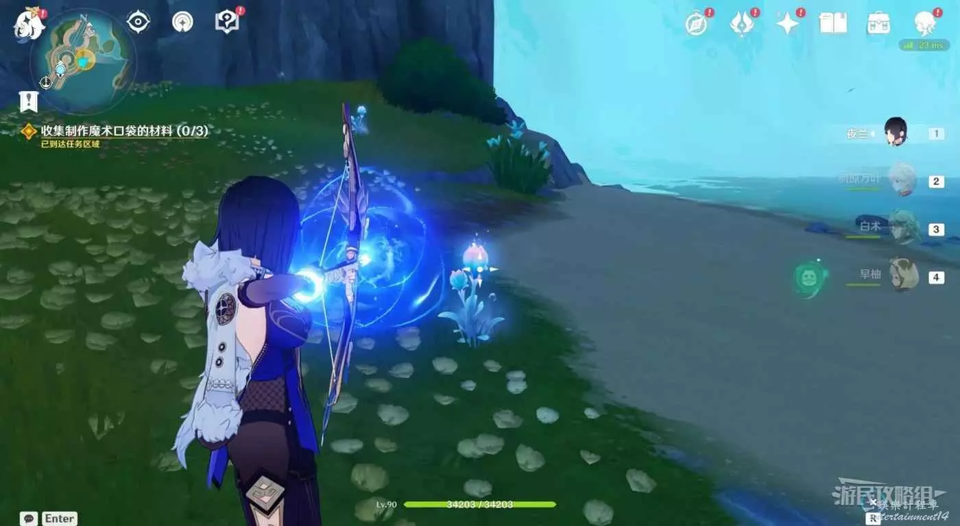切換一名水元素角色,使用水元素攻擊海露花並收集3朵。