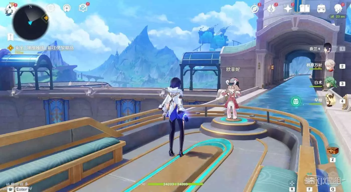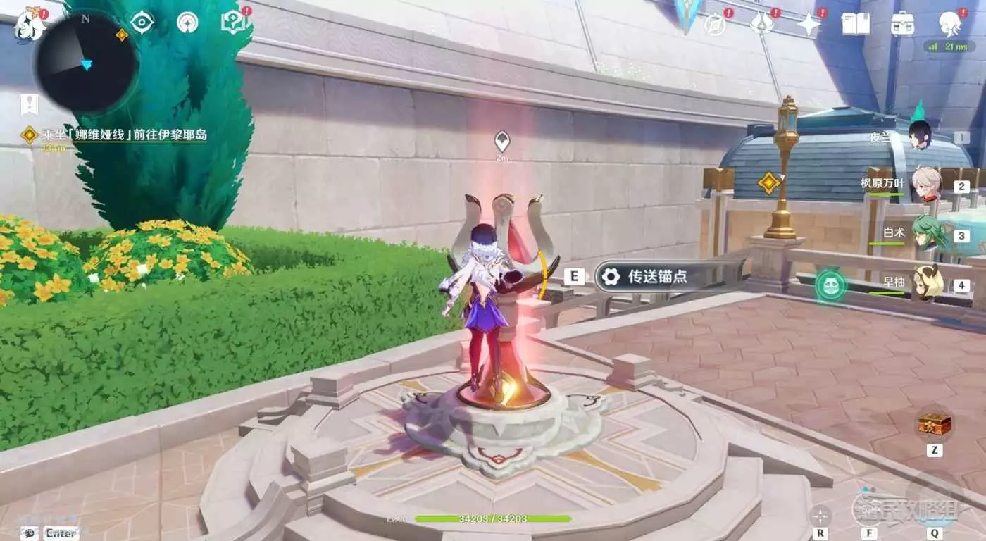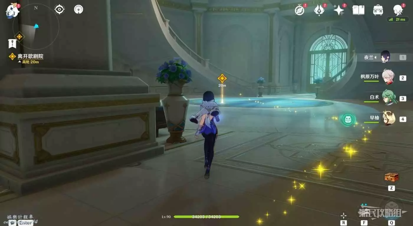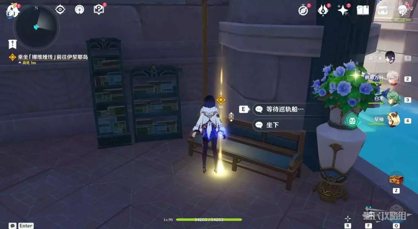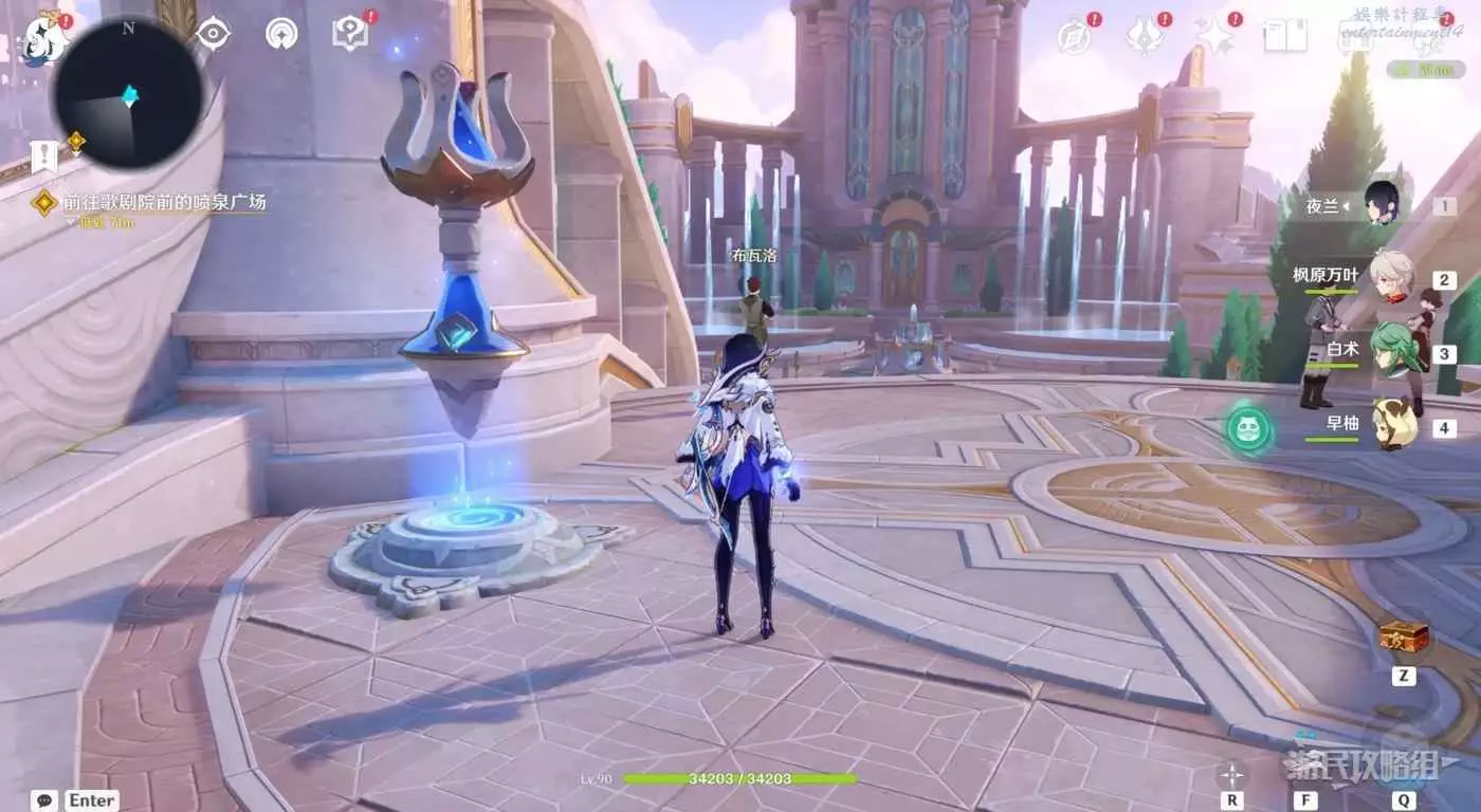 然後返回第一次來到楓丹亭處的廣場,從廣場進門找到電梯。選擇三層娜維婭線。
