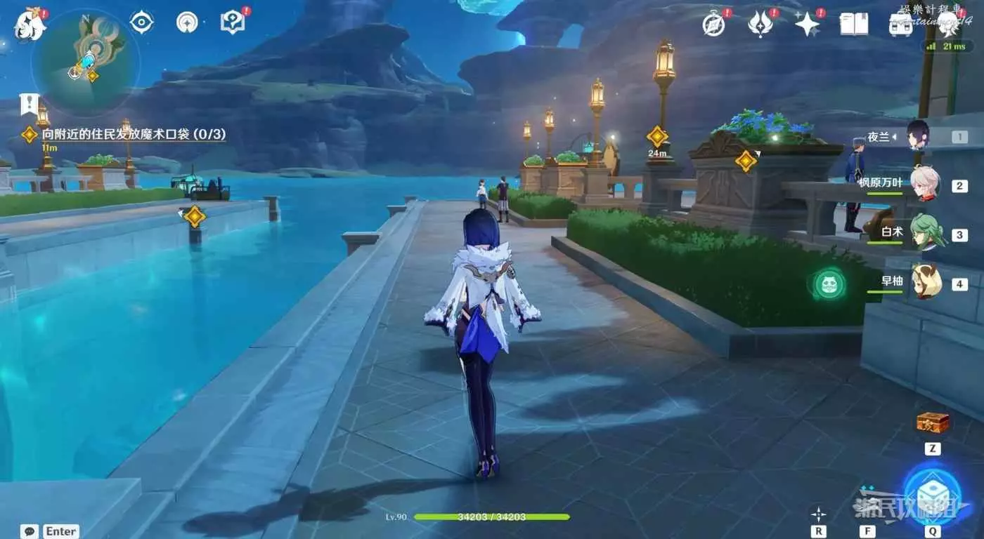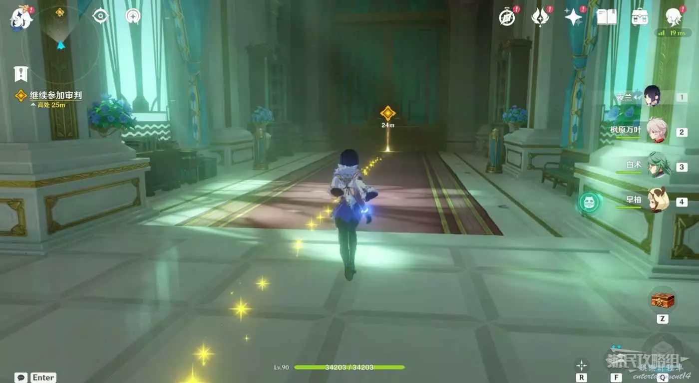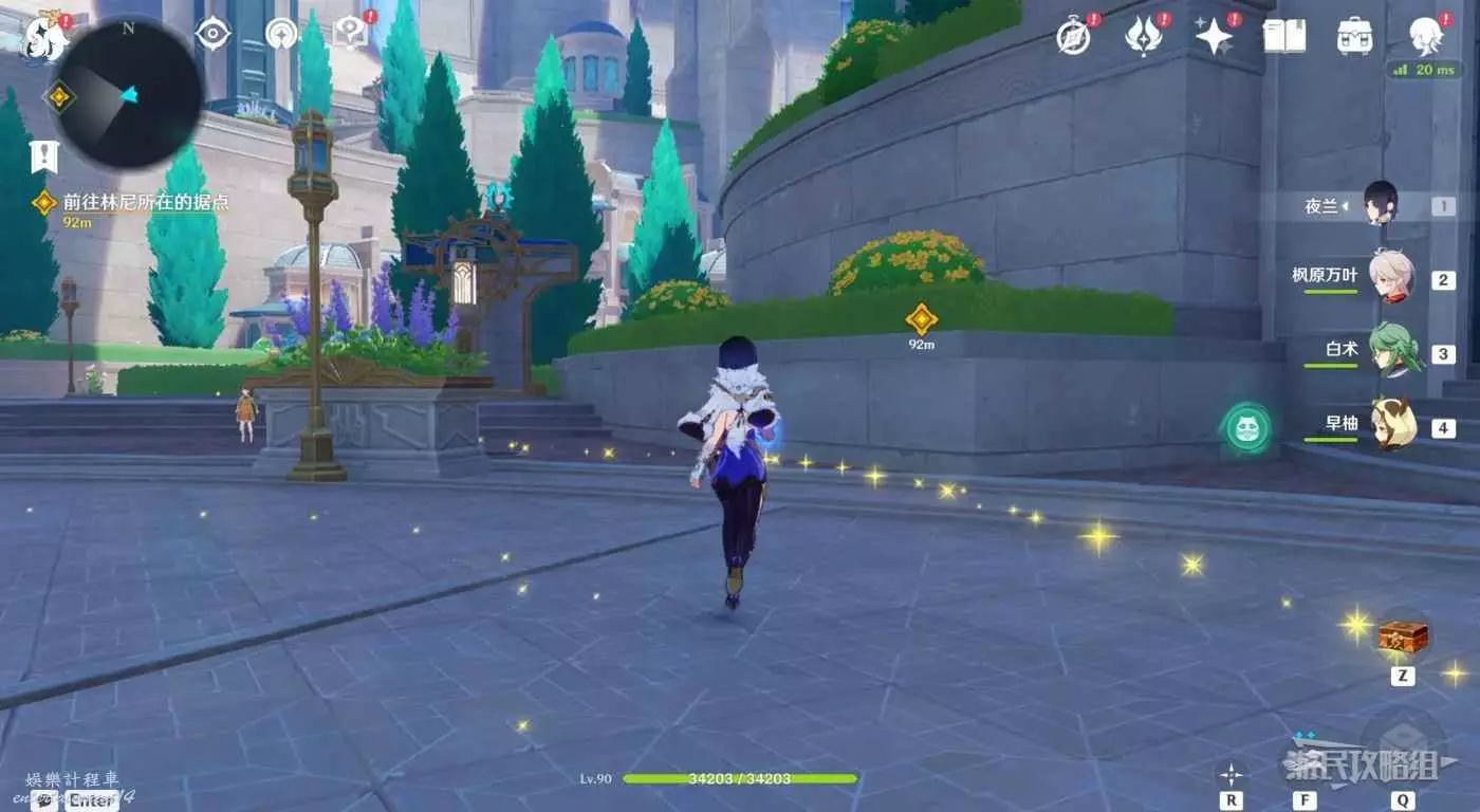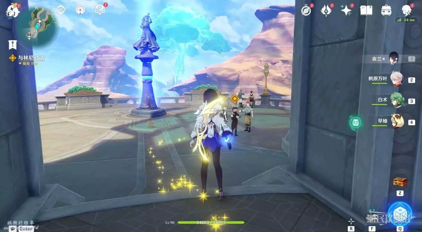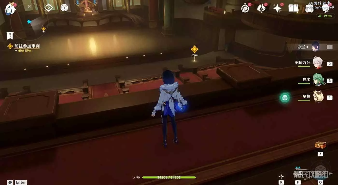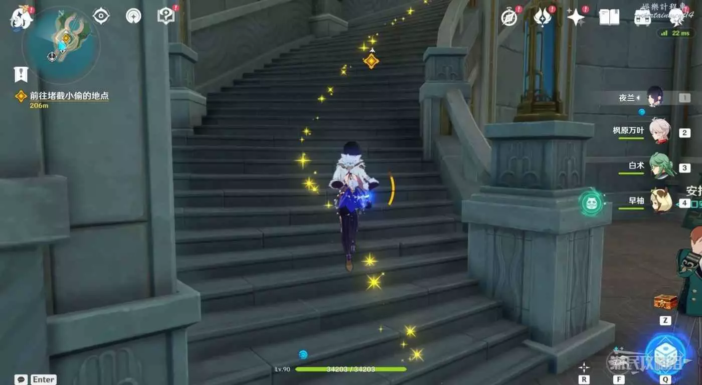 然後返回第一次來到楓丹亭處的廣場,從廣場進門找到電梯。選擇三層娜維婭線。